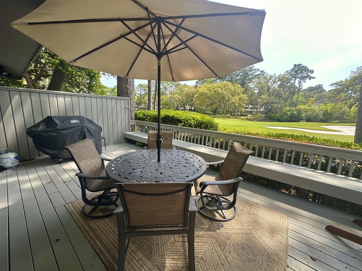 Great spot…overlooking the 14th hole on Hilton Heads private golf club. Loved the interior finishes and Beatles theme decor was tasteful and fun! We enjoyed morning coffee on the deck watching the golfers play thru…very convenient to local restaurants, shops, public golf and beaches…This place has it all!David - Posted: 5/18/2024