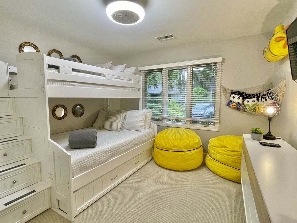 We absolutely loved this house! Beautiful location right on the golf course. Loved the Beatles decor, tastefully done. The three rooms were very spacious. The kids loved their bunk room and the games—shuffleboard and interactive game set. Location is great, close to Lawton Stables and quick drive to Harbour Town. Loved the hosts and they made our stay so pleasant and comfortable. Definitely recommend this place!Kristyn - Posted: 7/14/2024