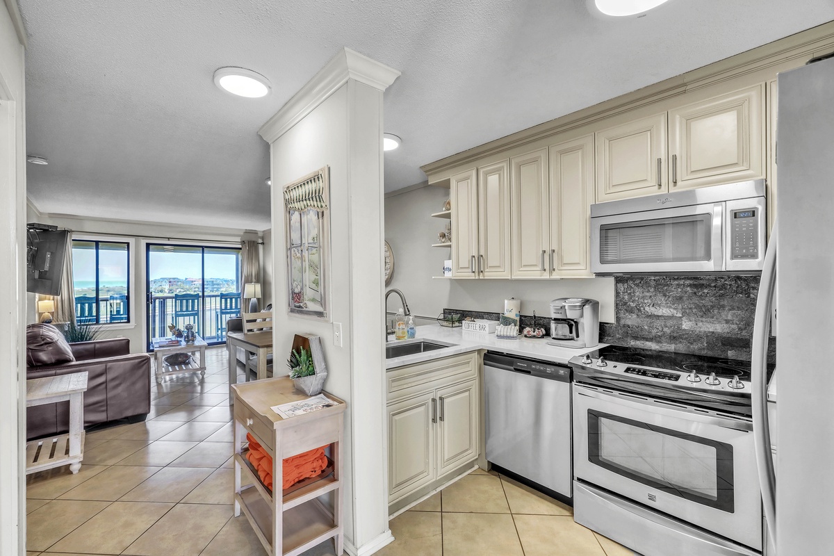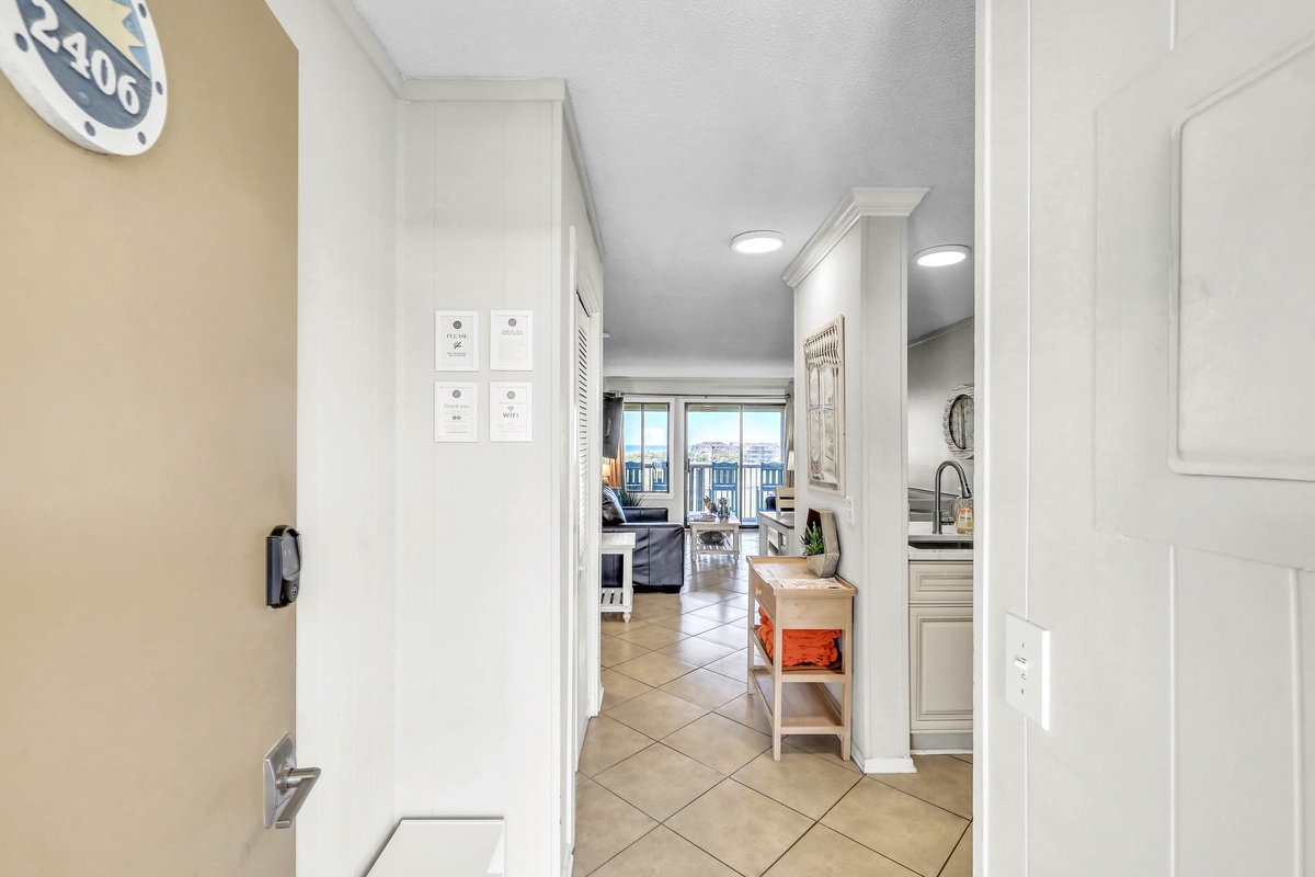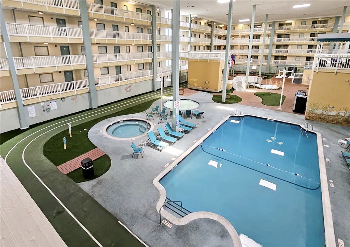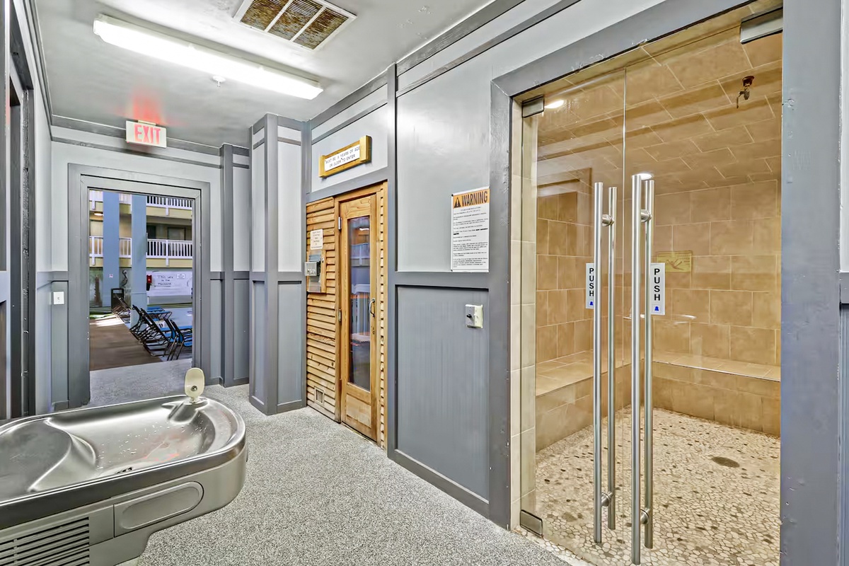 When you stay here, you also have full access to resort amenities like three pools (indoor, outdoor, and kiddie), a large hot tub, sauna, steam room, fitness center, arcade, tennis and pickleball courts, and an elevated sundeck. The gated resort also includes 24-hour security, luggage carts, laundry rooms with app-based notifications, and a convenience store on-site.