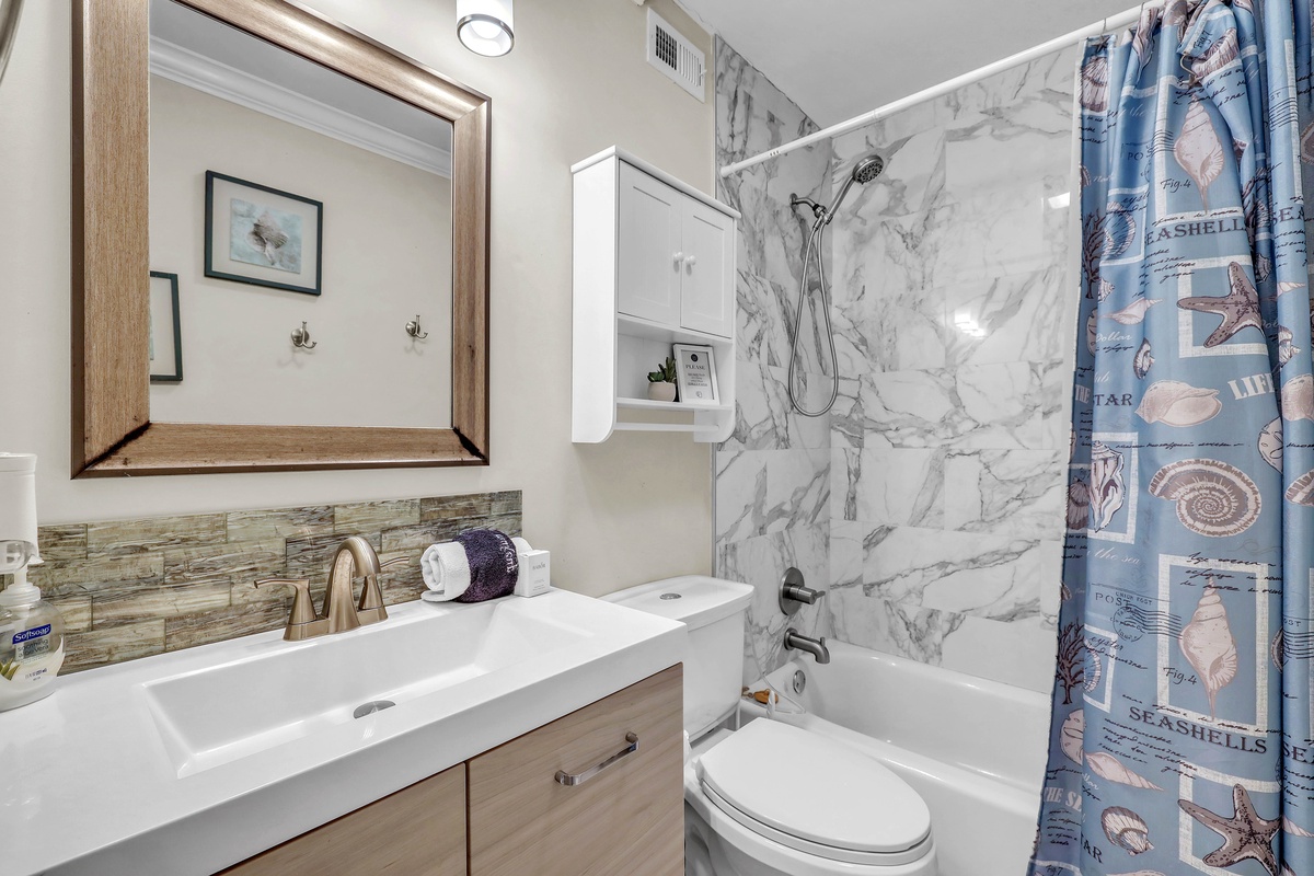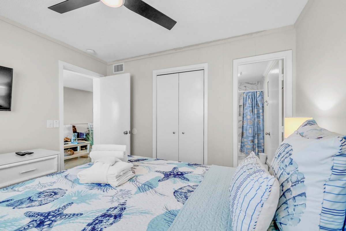 Inside the villa, you’ll find everything designed for comfort and convenience. From high-speed internet and smart TVs with streaming apps, to puzzles, board games, yoga mats, and all the beach gear you need. The kitchen is fully equipped with everything from a Keurig and bean grinder to an air fryer and Instant Pot, making meals easy whether you’re cooking or just relaxing with a glass of wine. Both bedrooms feature quality mattresses, extra pillows, ceiling fans, and USB ports.