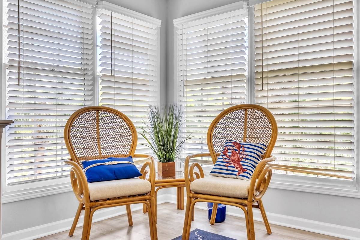 No carpet for flooring so that is a big plus. Nicely decorated. A little welcome gift was just the right touch. The coffee maker was missing the basket part and Mark came over right away with a brand new coffeemaker. It has a great view of the golf course and all rooms had lots of windows to enjoy the scenery. Being right next to the little creek... we could watch turtles and in the evening we could hear the crawdads sing. The location is the best for being quiet and yet a short bike ride to the beach, short walk to the pool and tennis courts. King bed and pillows were very comfy. We will be back and hope to stay here again.Mike K. - Posted: 5/11/2022