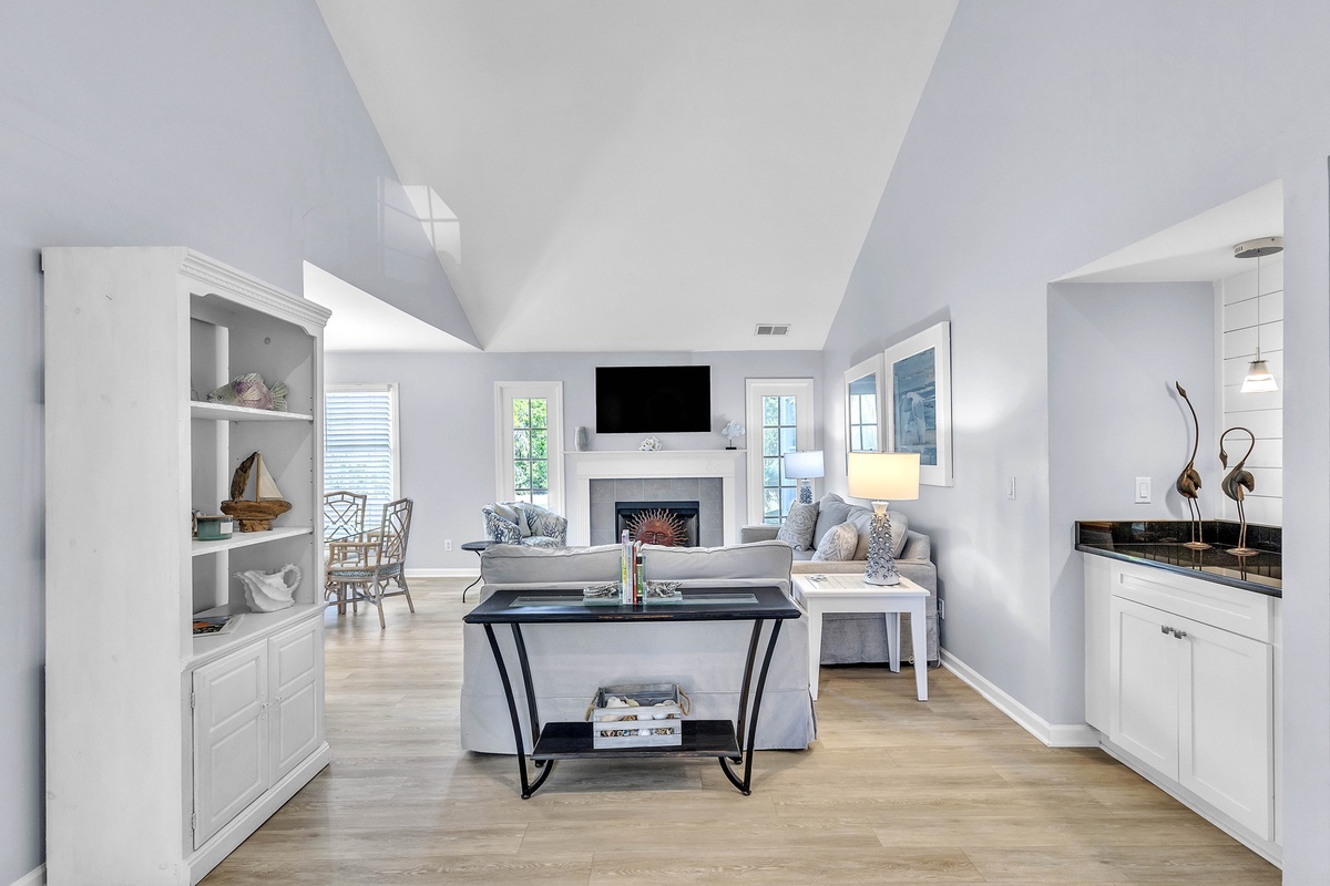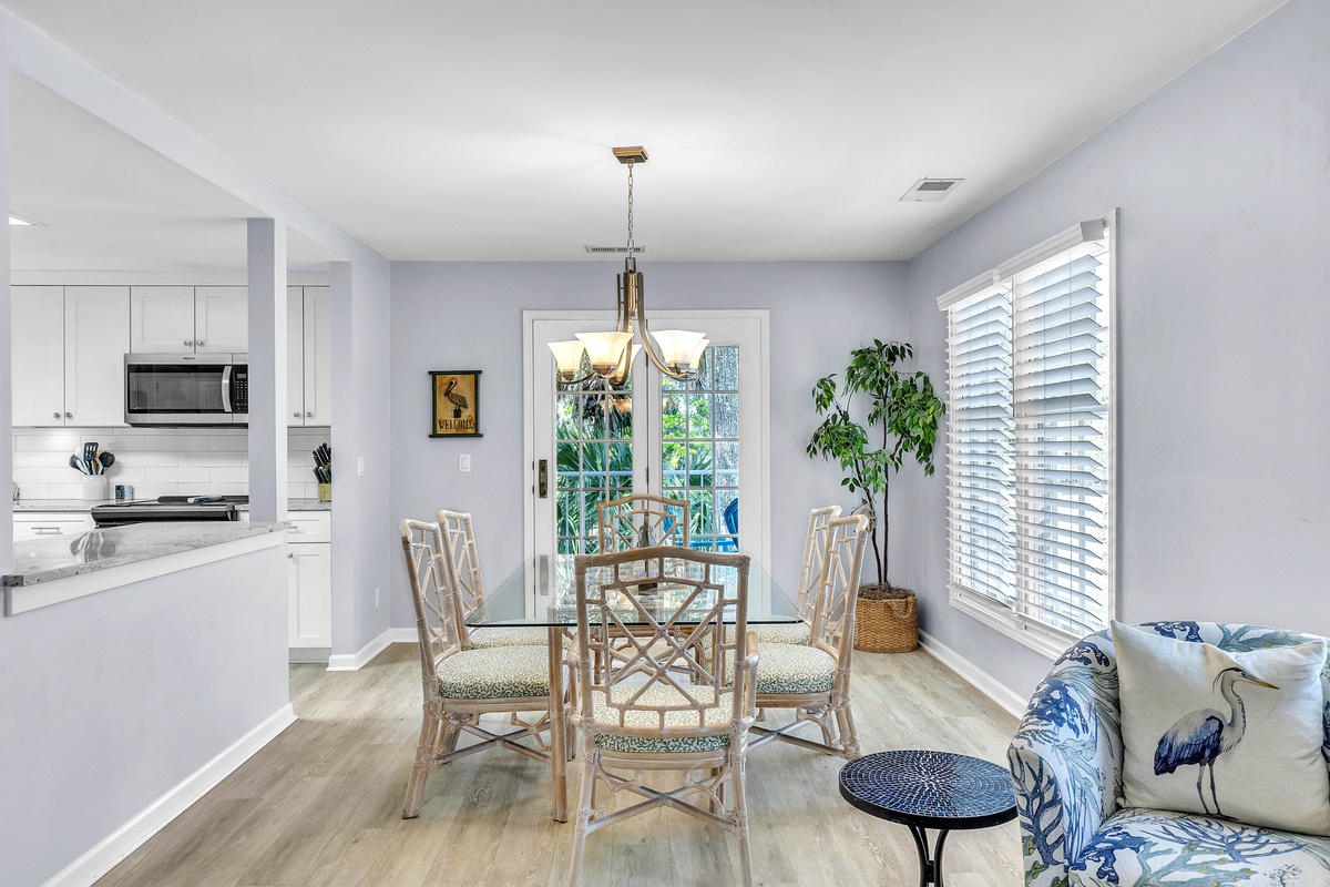 Chic coastal decor gives this lovely end-unit villa a great vacation home away from home feel where you are conveniently located in Shipyard Plantation, just a short distance to the community’s private beach.