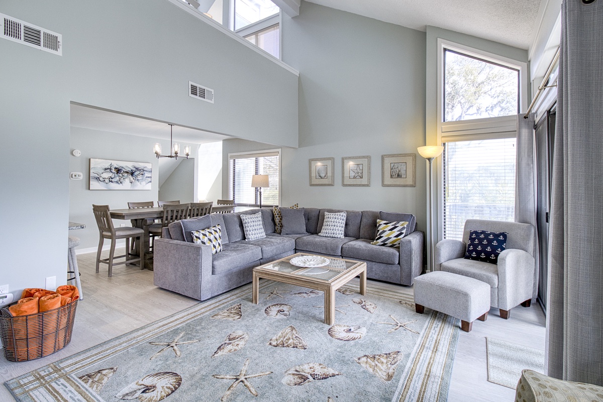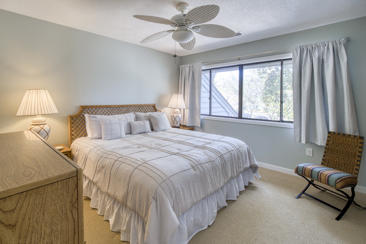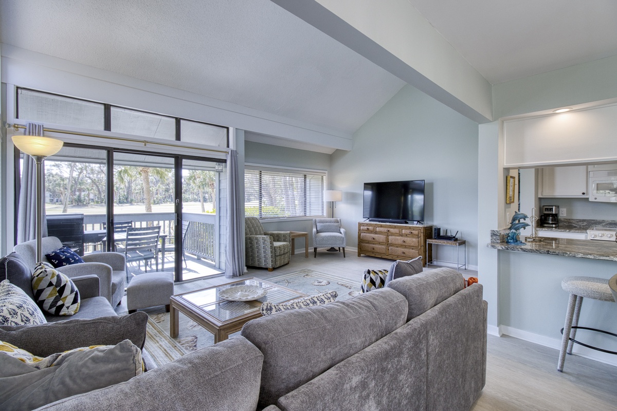 This three-bedroom condo, complete with a loft for additional sleeping space, provides plenty of room for families and groups. Comfortable seating, flatscreen TVs, and proximity to Hilton Head’s best attractions ensure your vacation is as relaxing or adventurous as you desire. Whether it’s world-class golf, sun-soaked beaches, or serene escapes, Turnberry Village has it all.