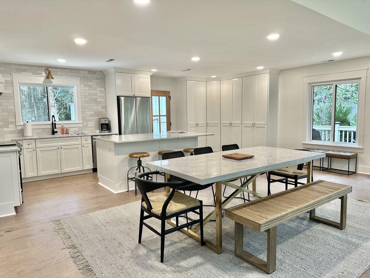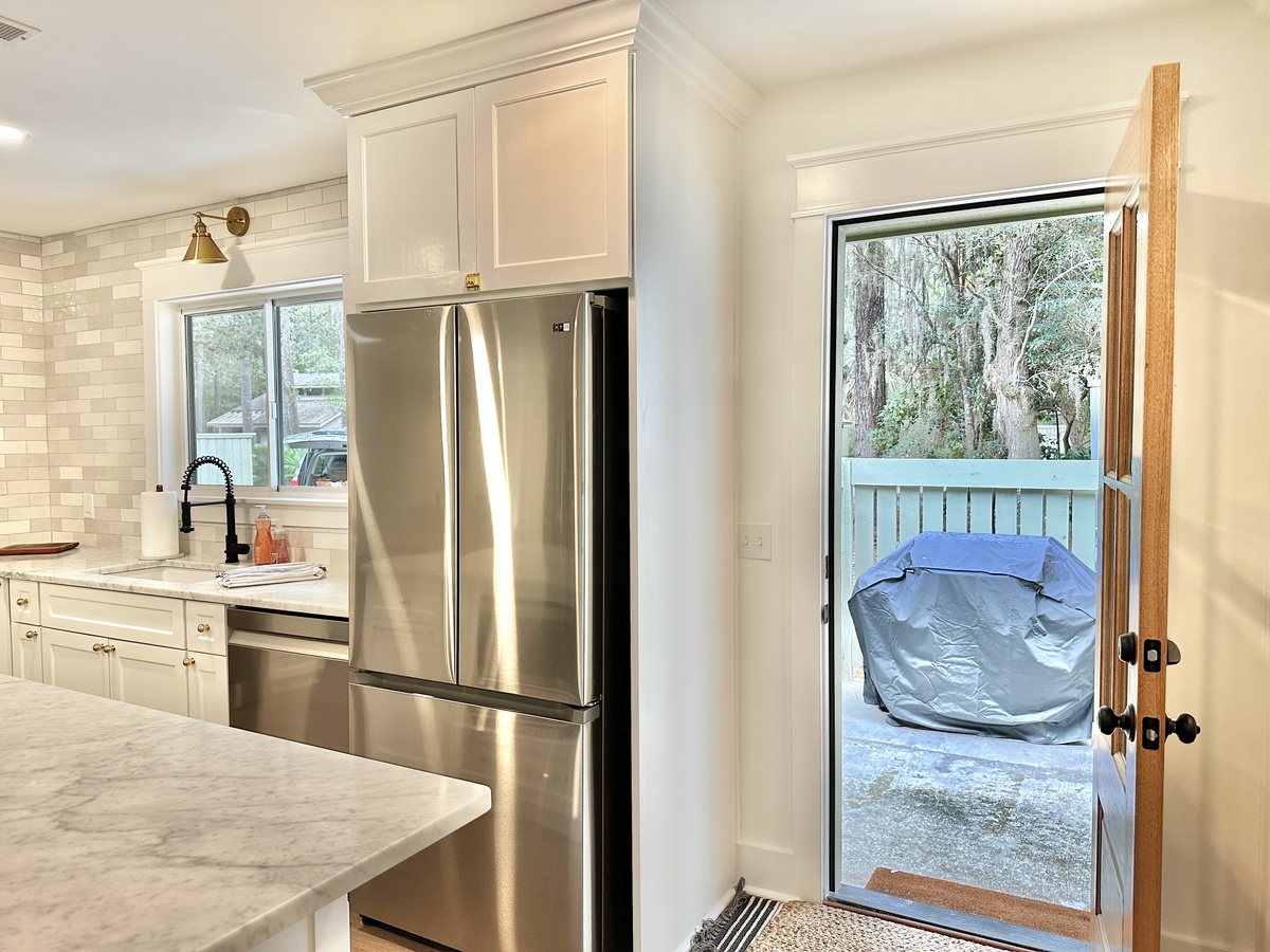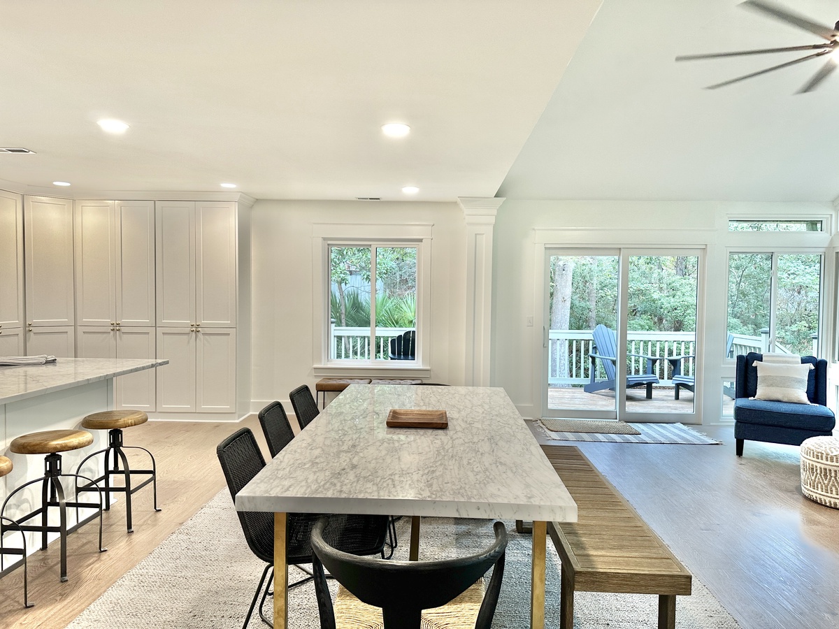 The spacious open layout with plenty of natural light is both cheery and calming. A fully equipped kitchen is perfect for brewing the morning coffee, packing a picnic lunch to enjoy at the beach, or preparing a gourmet feast for all. Be sure to bring the steaks, too, so you can enjoy grilling outdoors. Feel like curling up with a good book, or enjoying a family movie or game night? The living area is just right! The dining area and island with bar stools provides nice eating areas and outdoor dining can be enjoyed on the newly built deck.