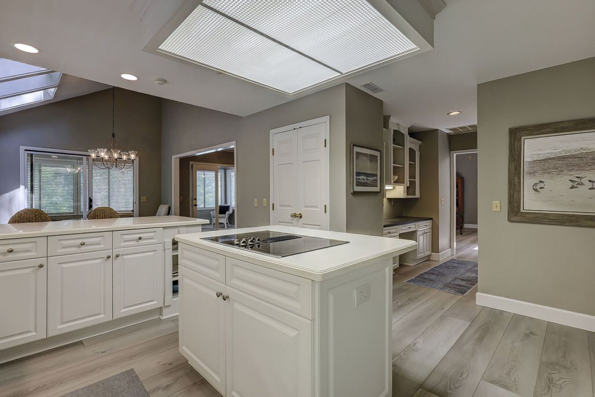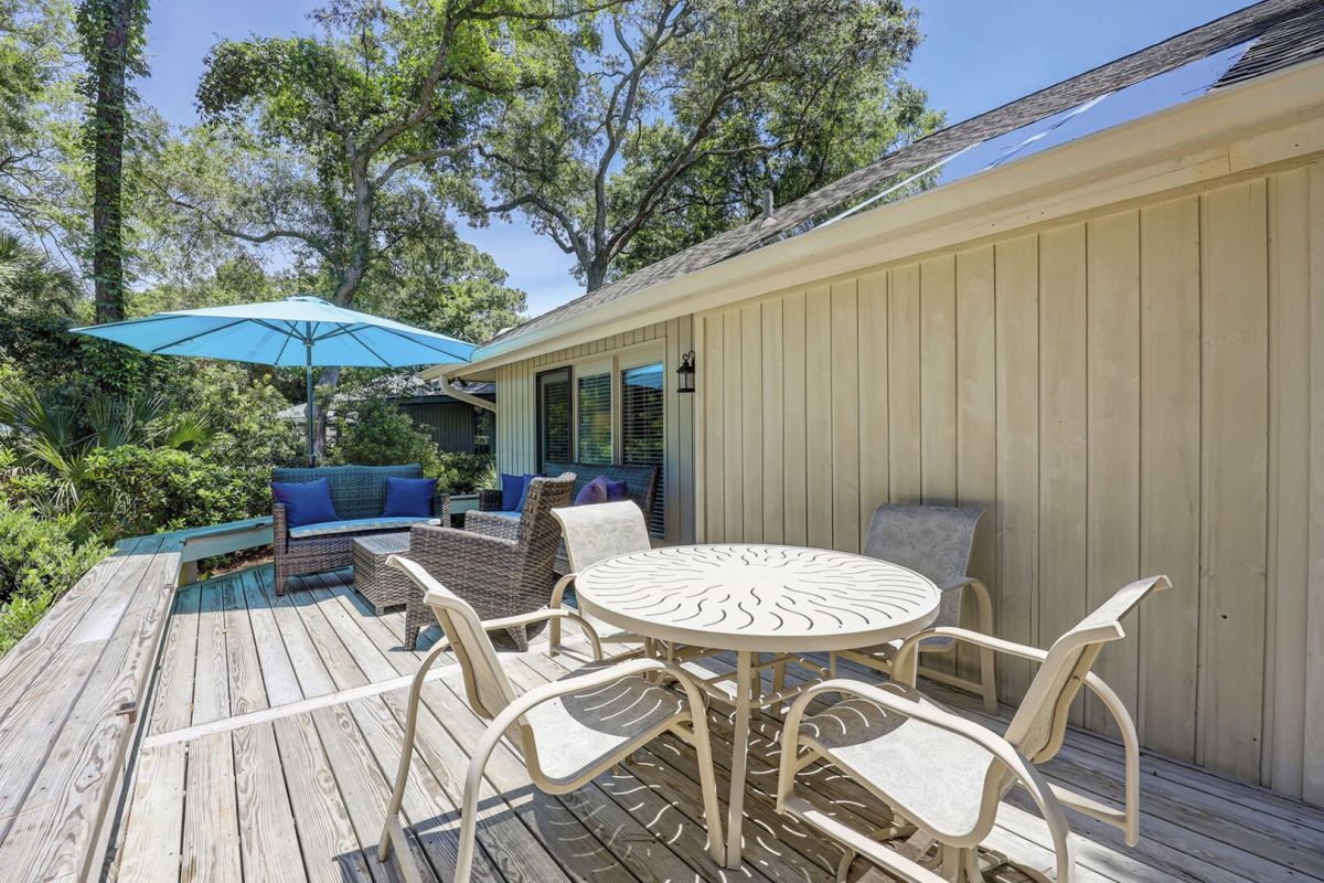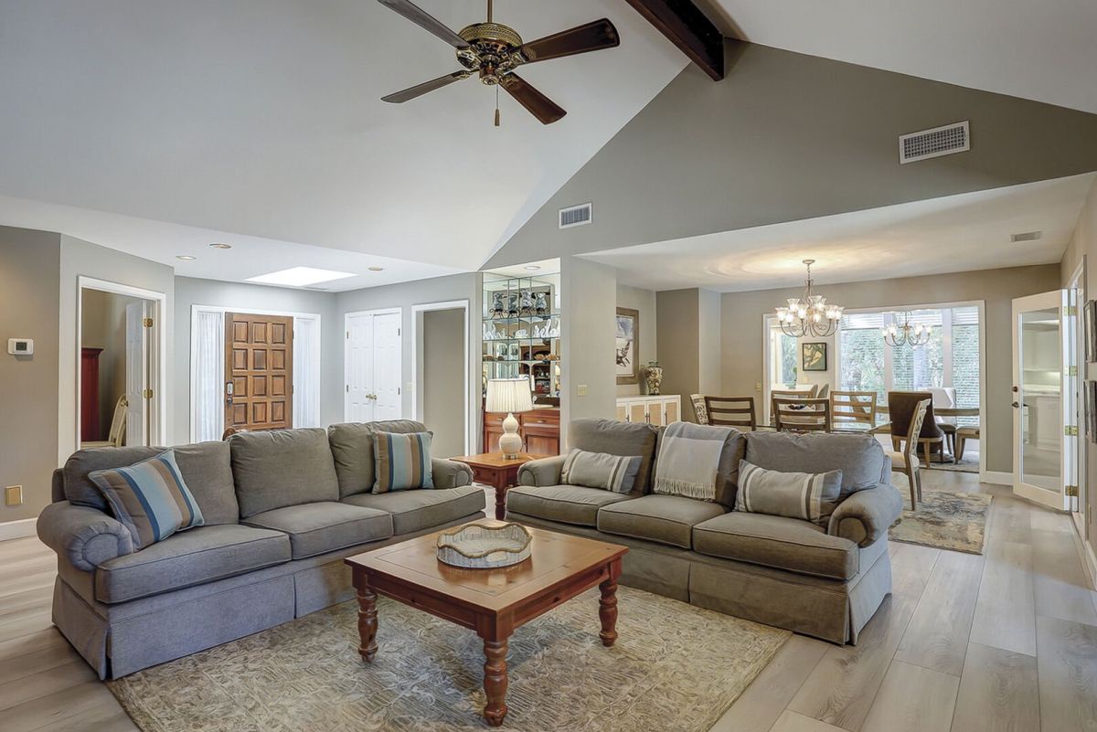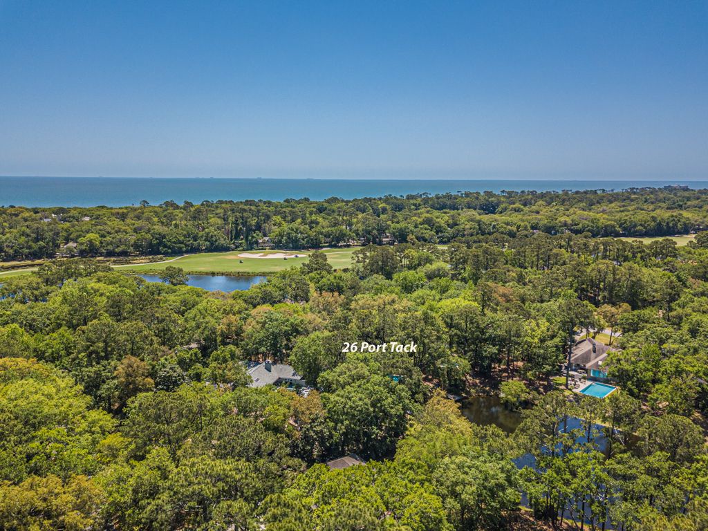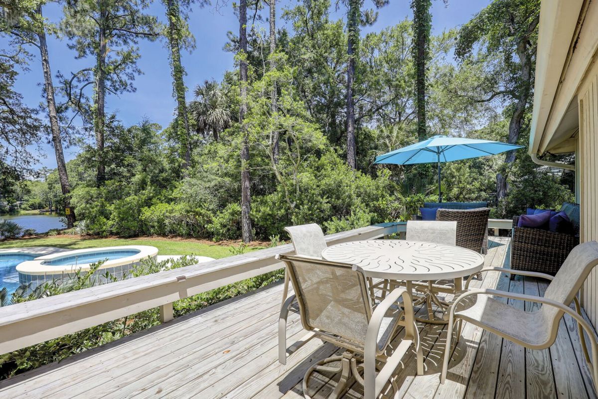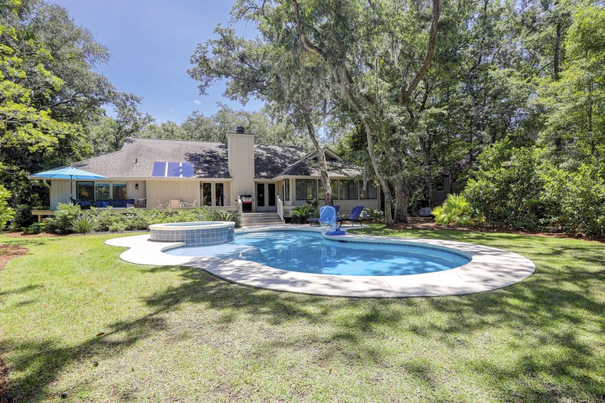 Welcome to 26 Port Tack, a modern, dog-friendly escape in Palmetto Dunes that combines comfort, style, and fun. This single-level home was recently updated and now features a brand-new pool, spa, and deck overlooking a tranquil lagoon. Vaulted ceilings and skylights brighten the open floor plan, and the layout offers natural flow and ease.