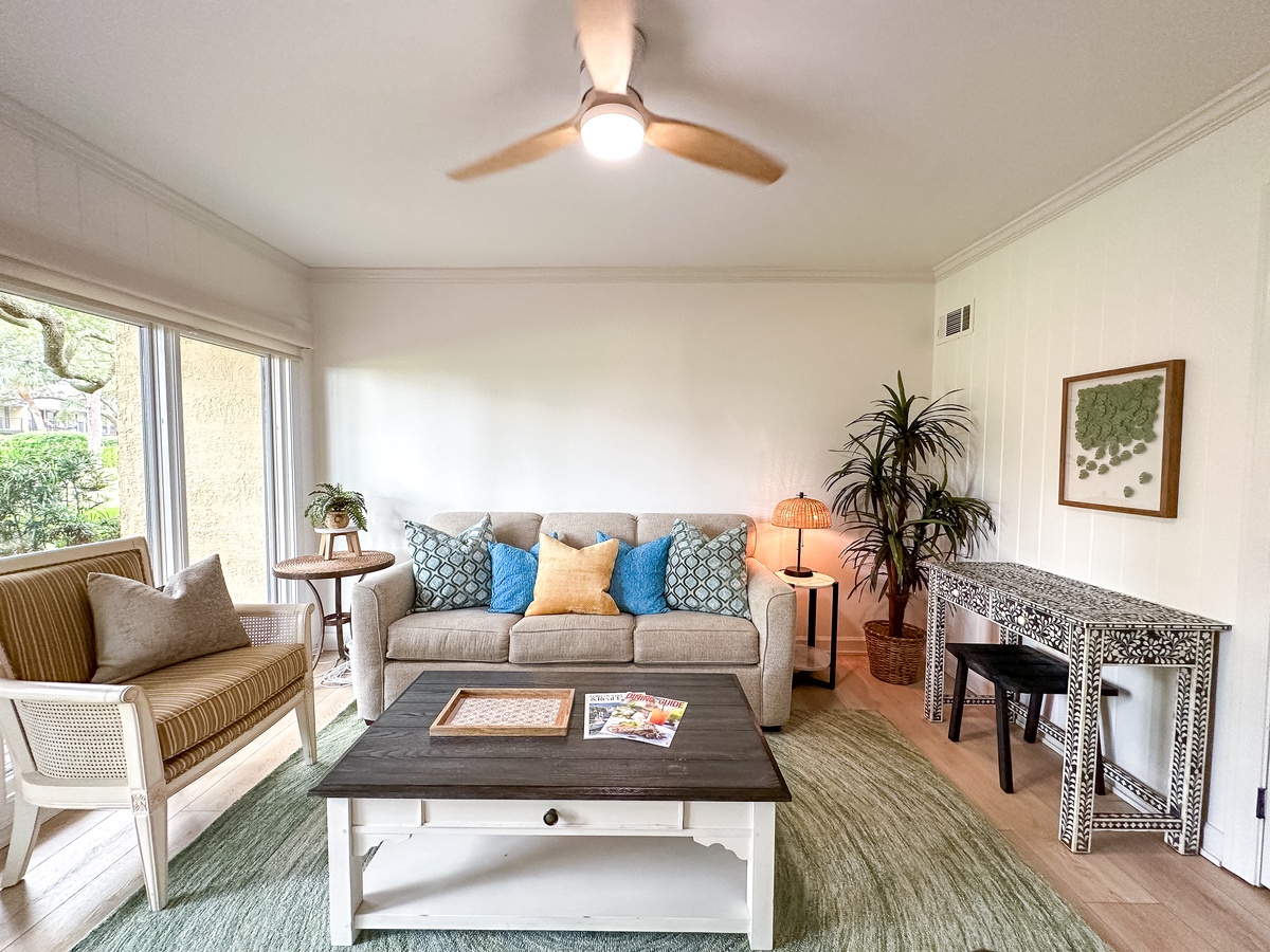 Welcome to 28 Hilton Head Beach Villa! This split-level villa was just renovated in June of 2023 and has everything you need for your next Hilton Head Island vacation. This home features 2 primary suites in the upstairs level each with their own bathroom. The lower-level bedroom features 2 comfy queen beds and uses the hall bathroom just off the entry. There is also a lovely sitting room adjacent to the double queen bedroom. The well-appointed kitchen is perfect for preparing snacks to enjoy on your patio, or gourmet meals to serve the family around the dining table for six. A charcoal grill on the patio is perfect for those family BBQs! Not in the mood to cook? Enjoy the many delicious dining opportunities in the area, everything from ice cream for the kids to exquisite late-night suppers!