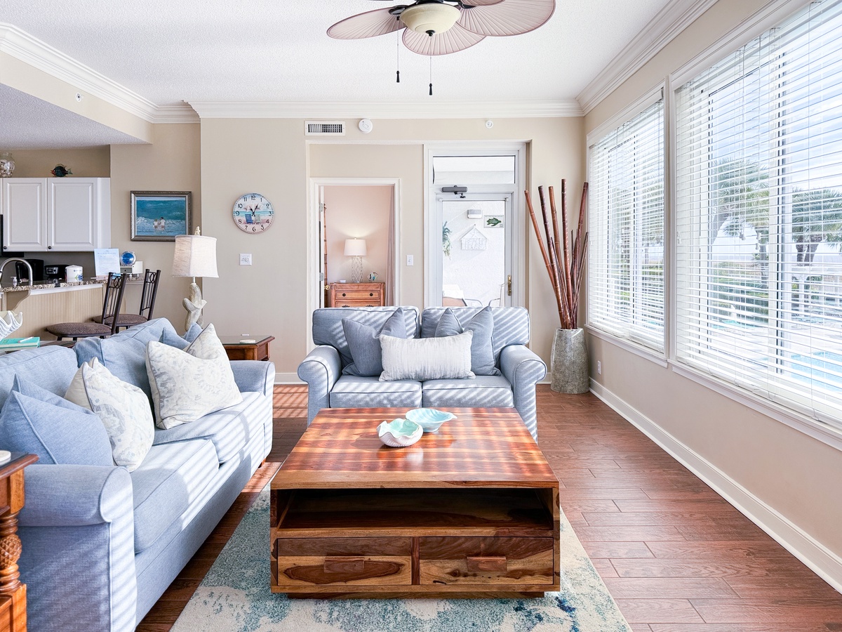 This is the 2nd time we have stayed here, tho my son-in-law’s family has stayed a few times as well. This unit is the perfect location for our extended family vaca, so convenient to pools, beach and PBJ’s. My 91 year old mom came on this vaca and she was able to sit inside and when breezy on our balcony to watch her family in the pool! The unit is spacious and very comfy! Well stocked with beach towels, beach chairs and lots of kitchen supplies if you like to cook. Our extended family rented other condos thru host2coast and all were happy with their choices. We will be back!Sally J from Akron Ohio - Posted: 6/22/2025