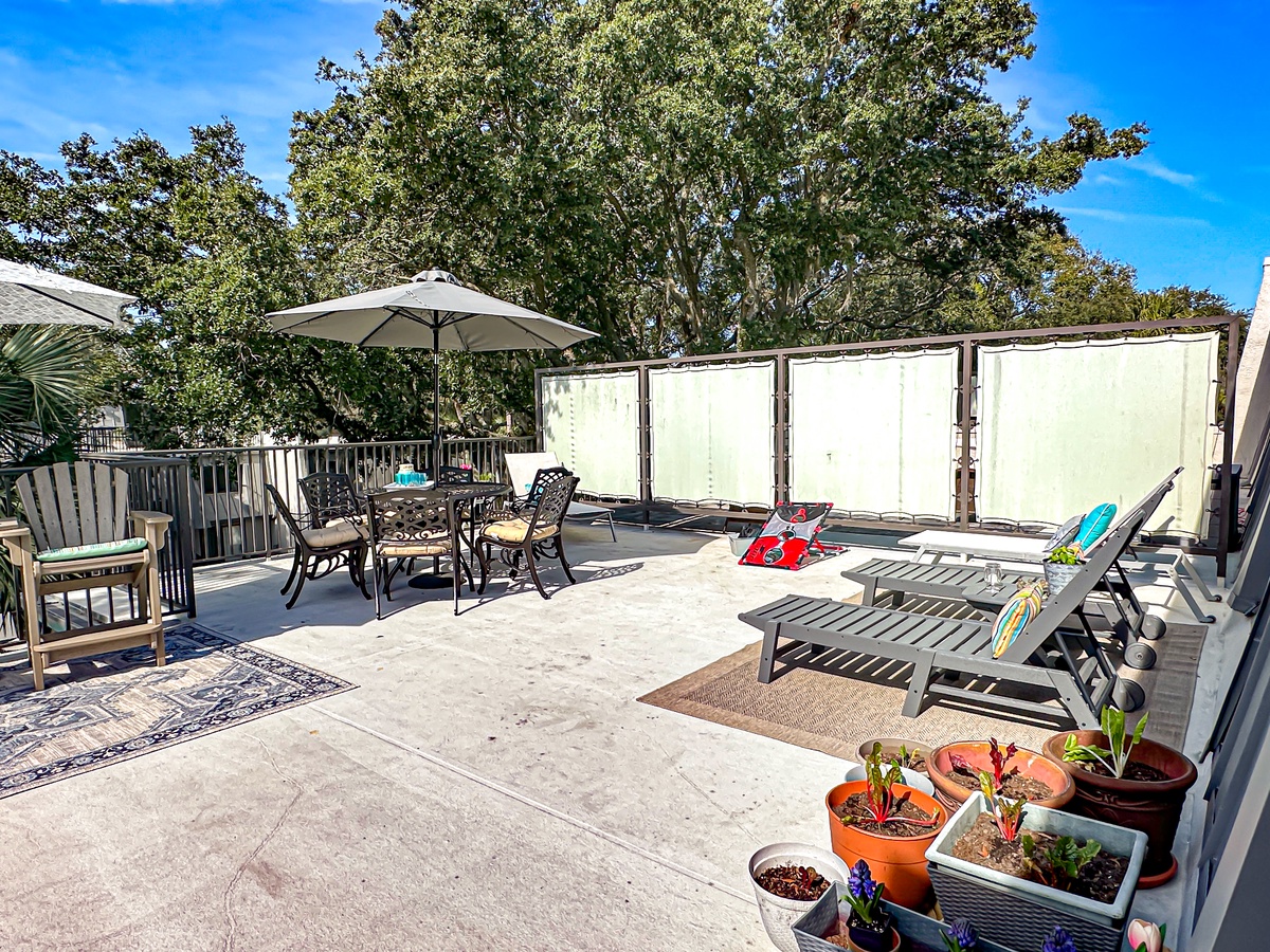 First off, this property is one of the absolute best stocked VRBO rentals we've ever been in. Plenty of towels for bathing, as well as plenty more for the beach! Kitchen has every gadget you can imagine, and plenty of plates, cups, and utensils too! All our guests and ourselves feel the beds were comfortable too! There are probably only three things (all related to a good nights sleep) that need a renters attention; the lawn care/landscape company mows the grass EARLY Friday morning (around 8am) so no sleeping in Friday due to mowing/trimming/leaf blowing right at your front doorsteps. And on Saturday at 6:45am the garbage man comes through the property with gusto; loud truck, beeping to backup, dragging cans to and from the units and banging the fences closed for good measure! Lastly is the guy with the leaf blower tending to the pool deck area each morning (except Sunday) with his leaf blower at 7:45am or so. These minor inconveniences can be addressed by the property owners with these vendors and would make a great place five stars in my book! The location is a short walk to the beach via a private boardwalk, is an otherwise quiet secured condo neighborhood perfect for relaxing with friends and family, and close to Coligny Plaza for shopping and dining options if needed. One thing we loved was the rooftop patio. Great for outdoor conversation and cocktails...but bring BUG SPRAY! The bugs were ruthless for some of us! All in, a great place to stay and we would recommend to anyone searching for a comfortable HHI escape!Tony - Posted: