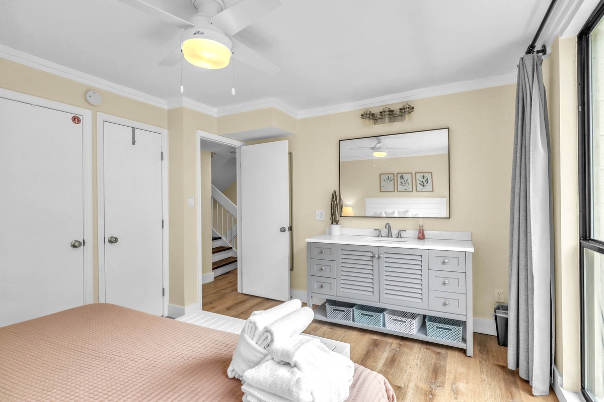 Ascend to the top floor, and you'll discover the primary suite, offering a king bed and a private bathroom with a shower and tub! Enjoy the luxury of your own covered balcony, providing a tranquil space to start or end your day with a breath of fresh air and a view of the surroundings.