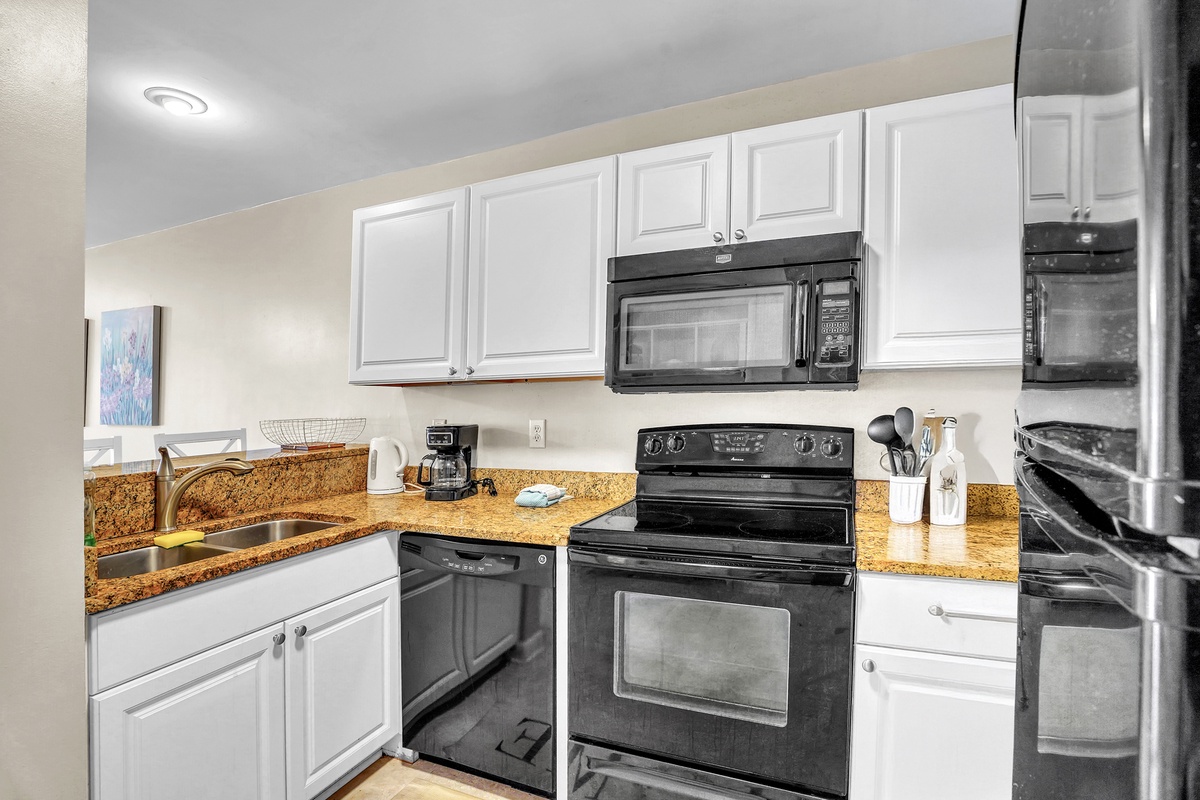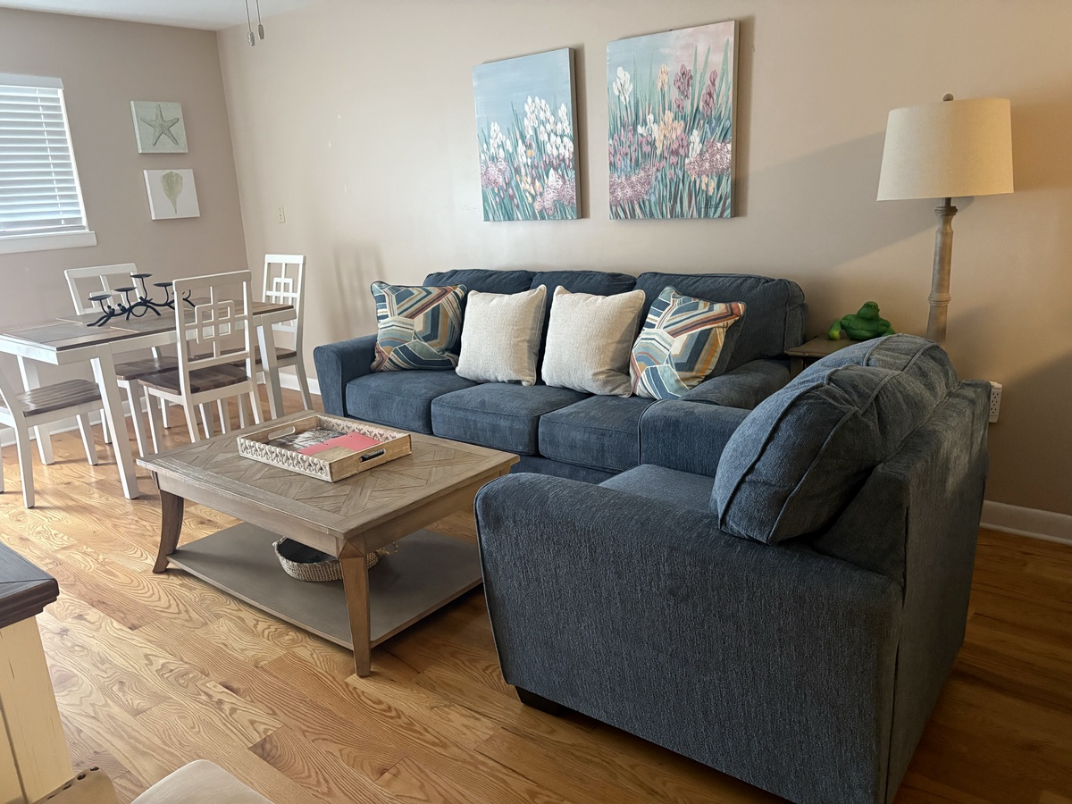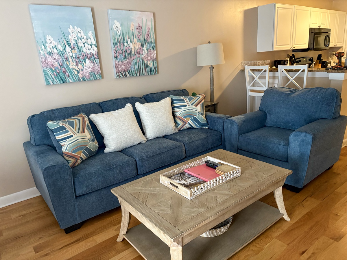 Step inside and discover a thoughtfully designed space that balances relaxation with functionality. The fully equipped kitchen makes meal prep a breeze, whether you're assembling snacks for the beach or crafting a full-course dinner. Enjoy meals together at the breakfast bar or the dining table for four - also a great spot for board games on a rainy day. After a day of exploring, kick back in the cozy living area and stream your favorite shows using your own accounts, or head out to the private balcony with a cool drink in hand to watch the sun slip below the horizon.