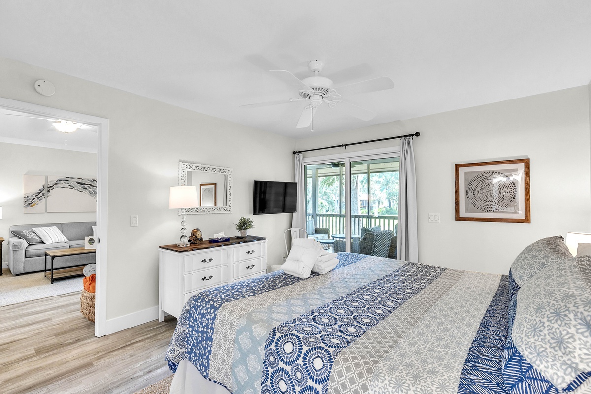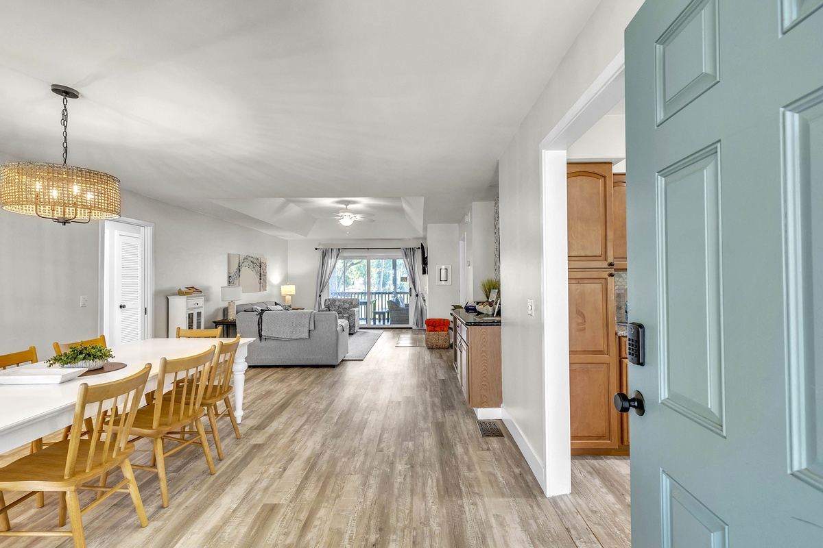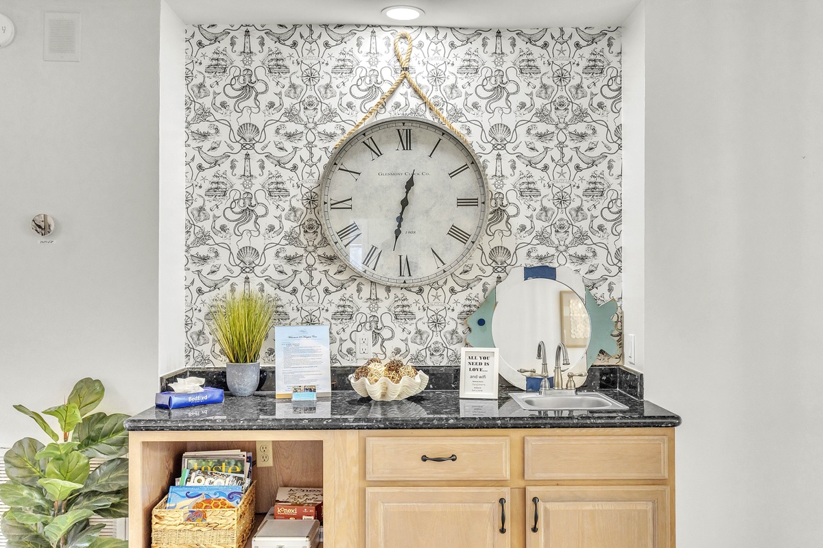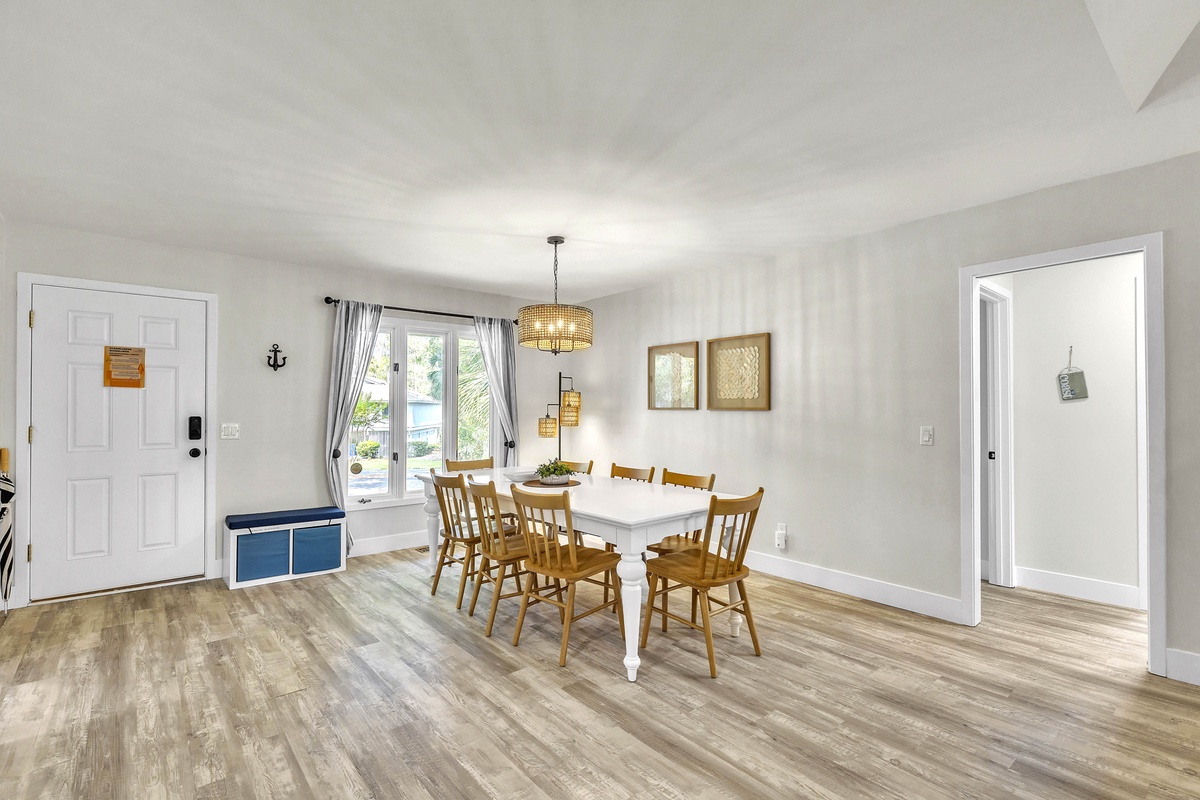 Escape to your dream family or golf getaway in this stunning 3BR/2BA home overlooking the 8th Green of the Galleon Golf Course, affectionately dubbed "The Atlantic Hideaway." Recently renovated, this home features a fully equipped kitchen and open-concept living area perfect for a midday snack or a quick retreat from the Summer heat. Just off the main living area is the enclosed back patio with golf course views, an outdoor dining table, and comfy rocking chairs. You may even find a stray golf ball or two! The primary suite features a king bed and en-suite bathroom with a walk-in shower. The second bedroom has two twin beds and shares a full hallway bathroom with the third bedroom, which has a queen.