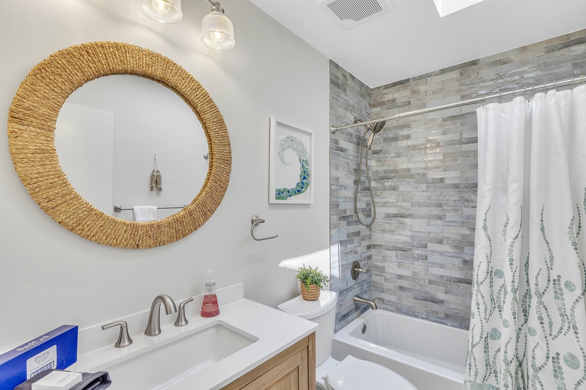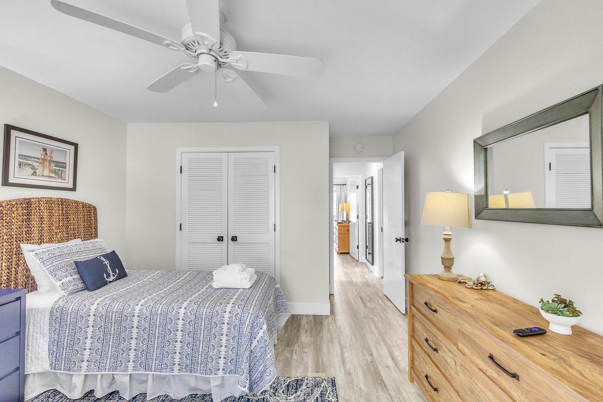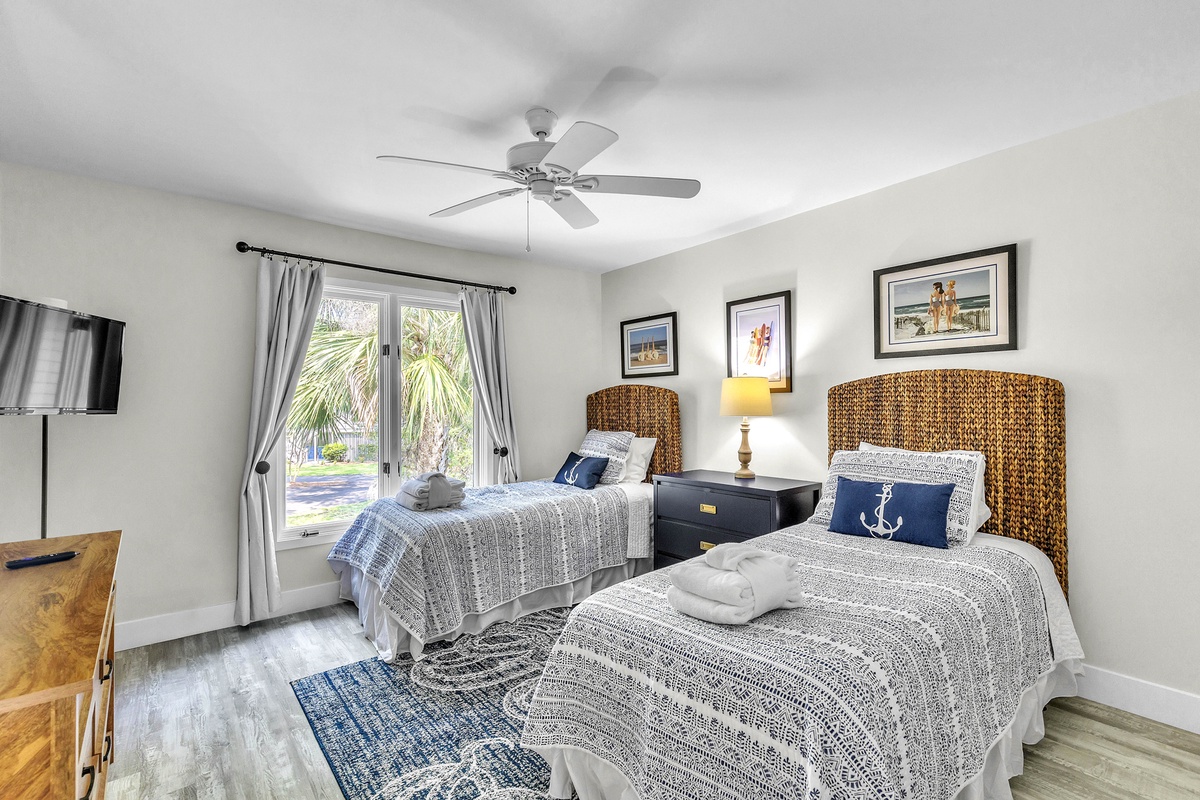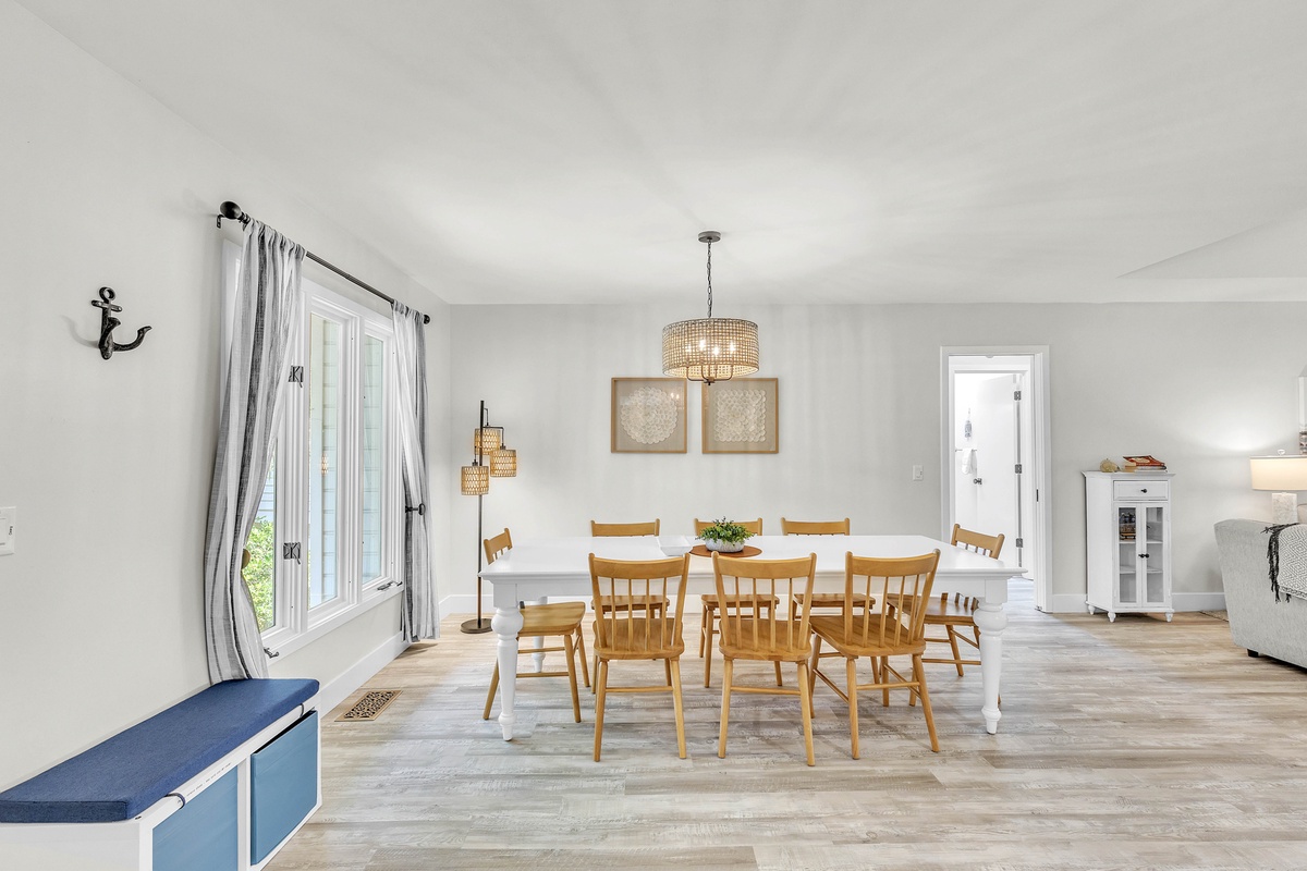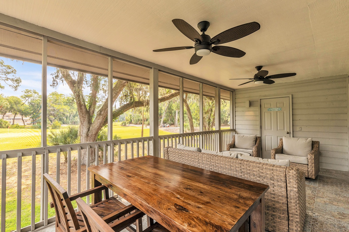 Escape to your dream family or golf getaway in this stunning 3BR/2BA home overlooking the 8th Green of the Galleon Golf Course, affectionately dubbed "The Atlantic Hideaway." Recently renovated, this home features a fully equipped kitchen and open-concept living area perfect for a midday snack or a quick retreat from the Summer heat. Just off the main living area is the enclosed back patio with golf course views, an outdoor dining table, and comfy rocking chairs. You may even find a stray golf ball or two! The primary suite features a king bed and en-suite bathroom with a walk-in shower. The second bedroom has two twin beds and shares a full hallway bathroom with the third bedroom, which has a queen.