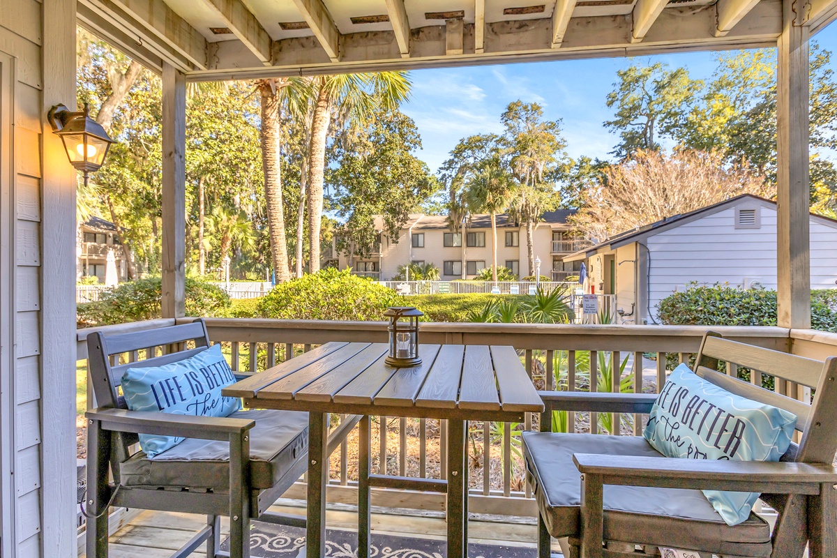 Welcome to a charming 1st-floor villa that offers the perfect blend of comfort, convenience, and coastal living. Nestled in a serene community, this home provides the ultimate sanctuary for those seeking a peaceful escape, while being just moments away from the vibrant energy of Hilton Head Island. This beautifully furnished villa sleeps 6, making it ideal for families or small groups. With its private balcony, modern amenities, and prime location, this property is truly one-of-a-kind.