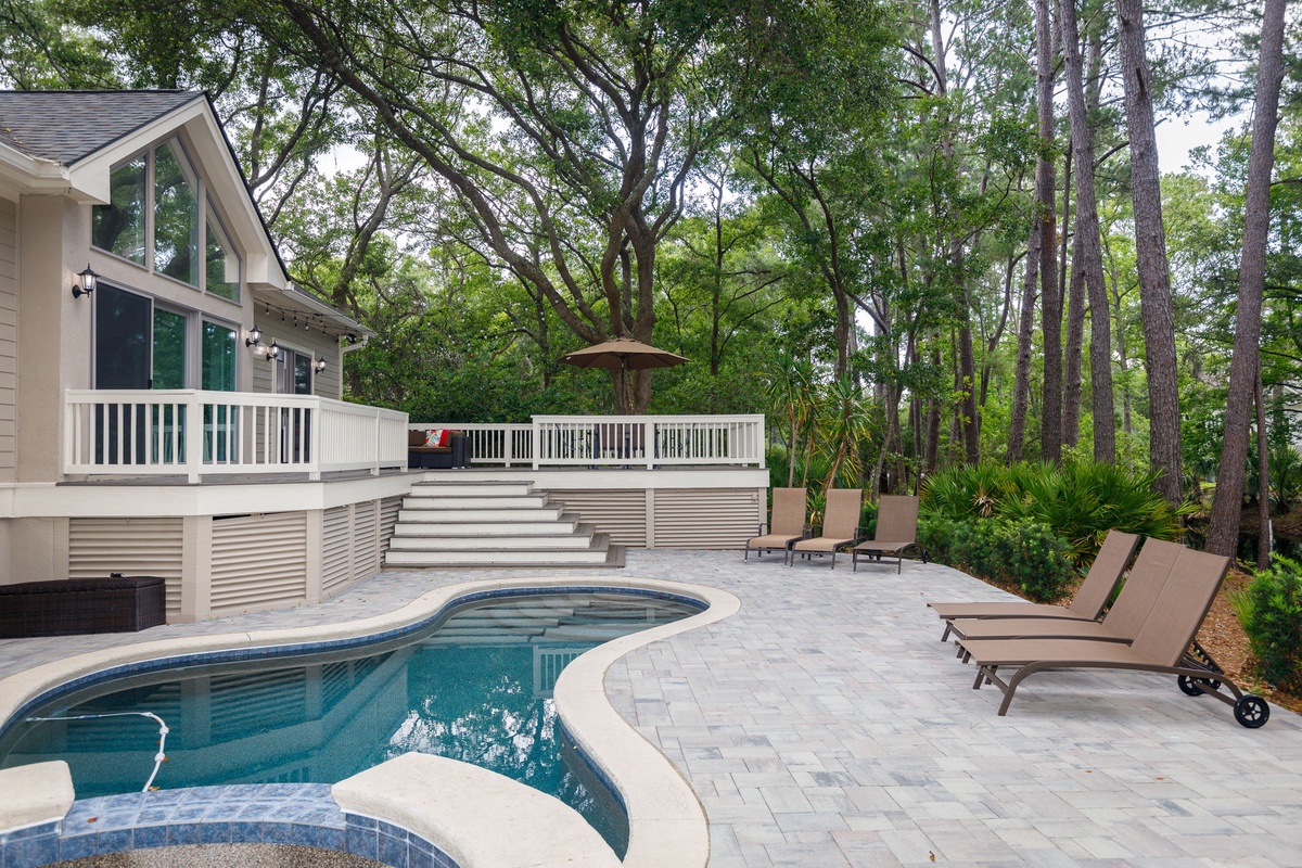 Find yourself at home in this beautiful 6-bedroom home on a peaceful street in Palmetto Dunes with a private pool, hot tub, and everything you need for your next Hilton Head vacation! Situated in Palmetto Dunes Resort, you have the beach nearby (an easy 5-to-10-minute bike ride away) and so many fantastic amenities you’ll never want to leave! Pick your leisurely activity; lounging in the expansive pool, soaking in the hot tub, an impromptu grill party on the back deck, or ping pong in the garage!!! Golf anybody? All three golf courses here have been rated four stars or more by Fodor’s Golf Digest Places to Play. More than 200 miles of bike riding pathways, trails, and beaches are here for you to enjoy, and Hilton Head Outfitters can help with bike rentals on the island. They also have everything you need for the beach, from surfboards to beach umbrellas and so much more.