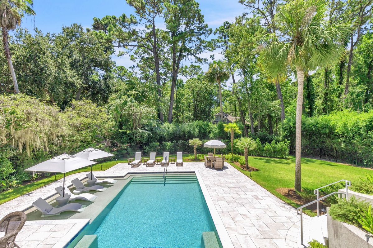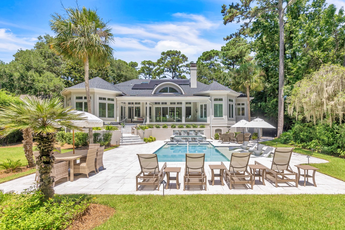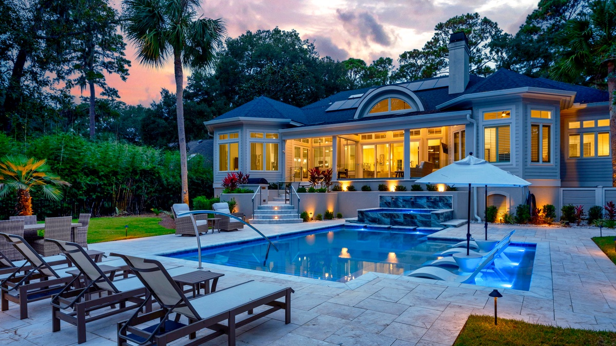 Step into pure Lowcountry luxury at 4 Jessamine Place - where resort-style living and coastal charm unite. This extraordinary retreat immediately captivates with its grand architecture, expansive windows glowing at sunset, and a secluded backyard designed for unforgettable moments. With its lush palms, sparkling waters, and sleek, modern finishes, this home offers a rare blend of island relaxation and contemporary elegance. Plus, only a 8-10 minute walk to the beach!
