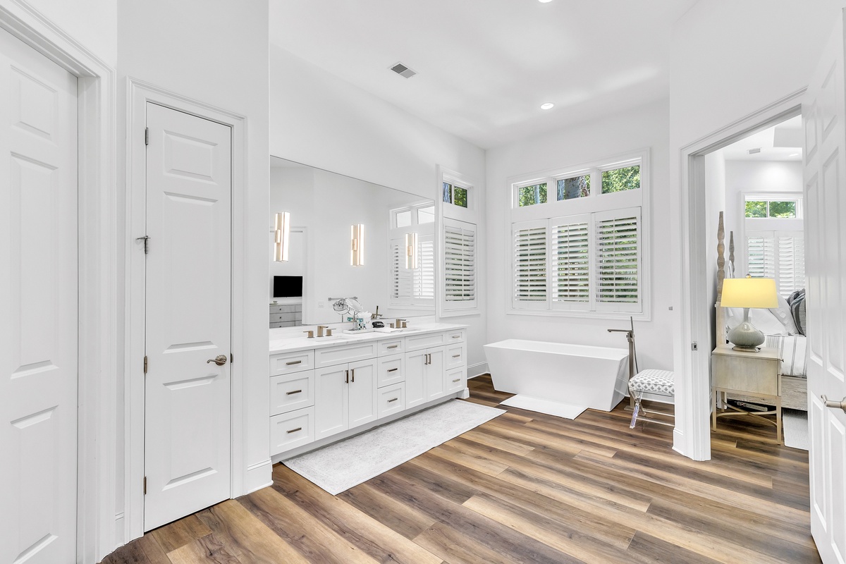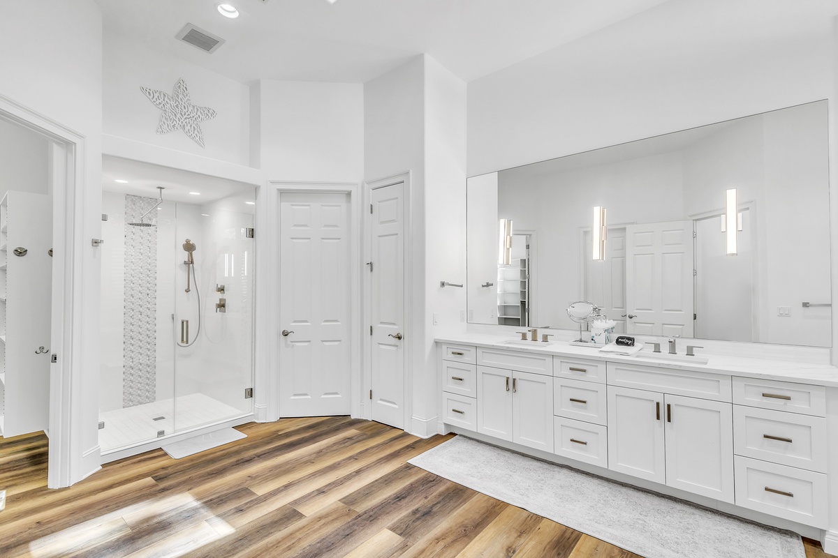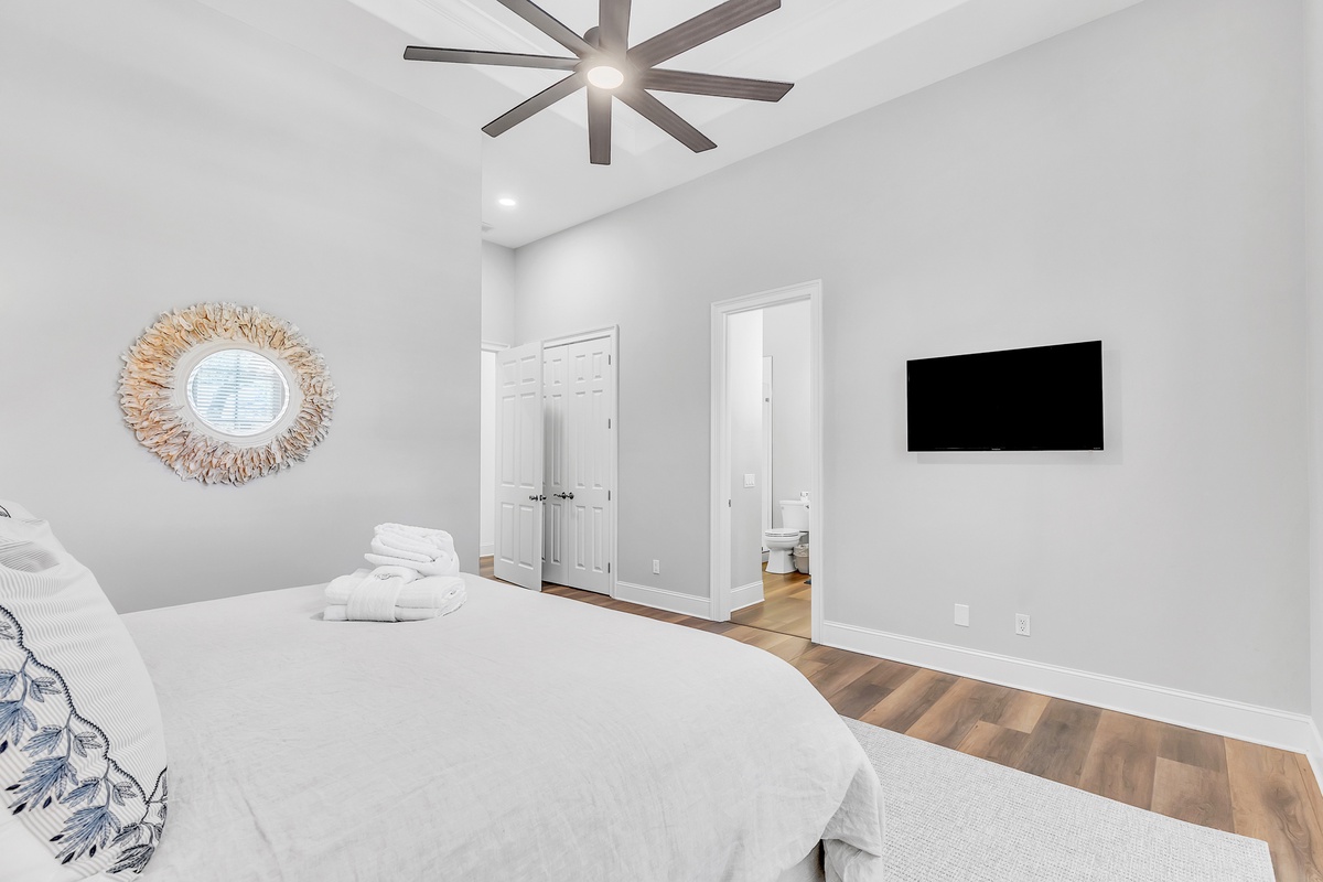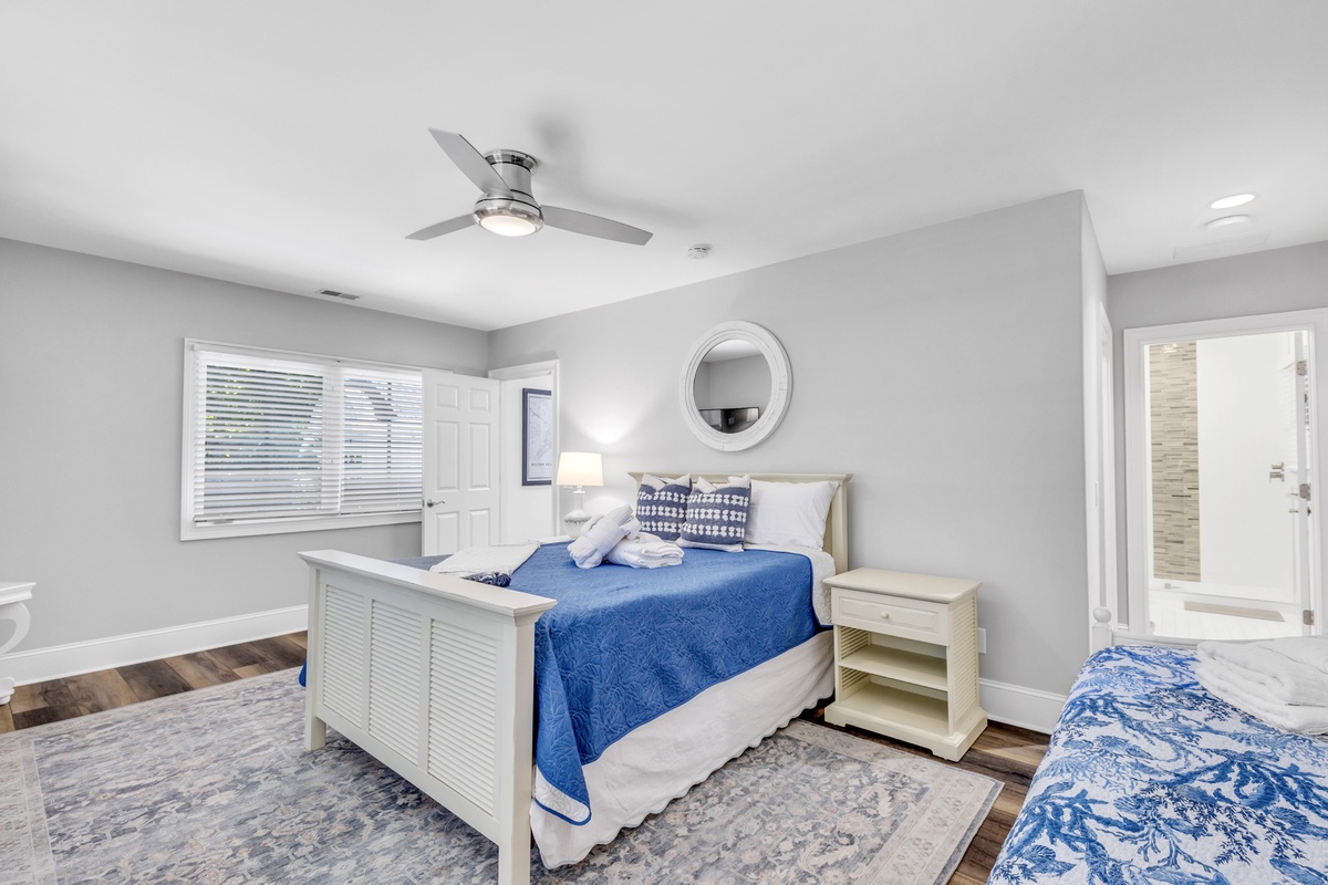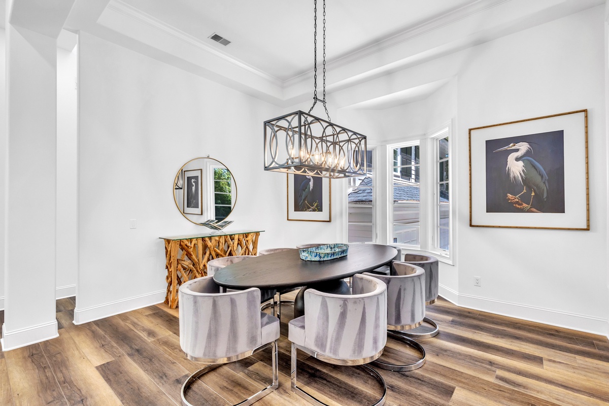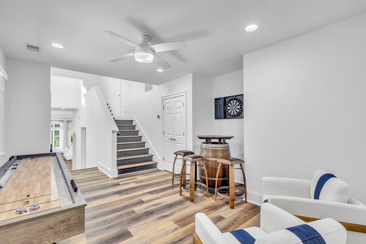 Every corner of this home feels designed for indulgence. Imagine sipping cocktails in the screened-in porch as ceiling fans keep the coastal breeze flowing, or gently swaying on the custom rope-hung porch swing while gazing out over the pool. For lively evenings, retreat to the game room complete with shuffleboard and dartboard, where fun and laughter fill the air. The bedrooms are serene sanctuaries with plush bedding, designer furnishings, and spa-like bathrooms. The primary suite offers a retreat within a retreat, with a king bed beneath a dramatic tray ceiling and oversized windows framing the natural beauty outside. Whether you crave vibrant gatherings or peaceful solitude, this home delivers it all in effortless style.