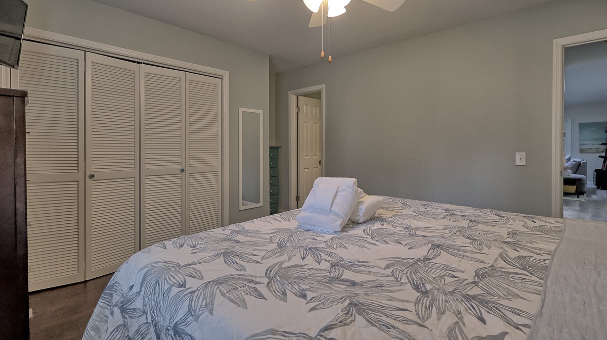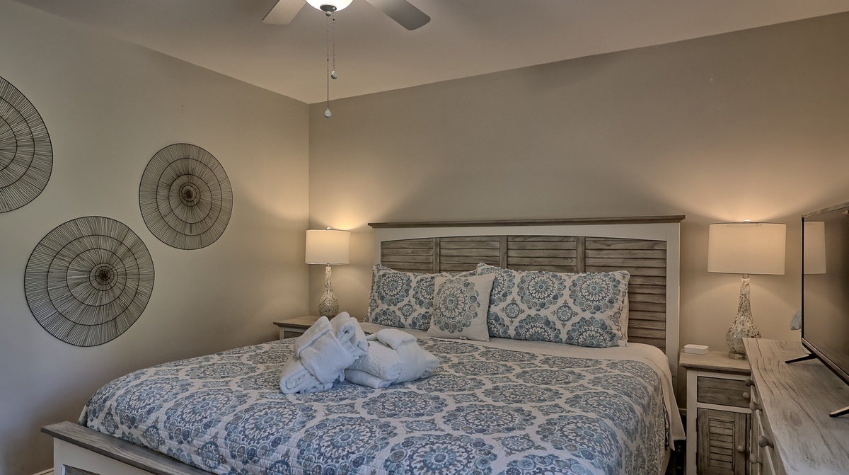 Step inside, where central AC, ceiling fans, and an open-concept living area set the stage for your vacation escapade. The kitchen, equipped with shiny stainless steel appliances, invites culinary adventures, and French doors swing open to a patio where the grill awaits your barbecue mastery.