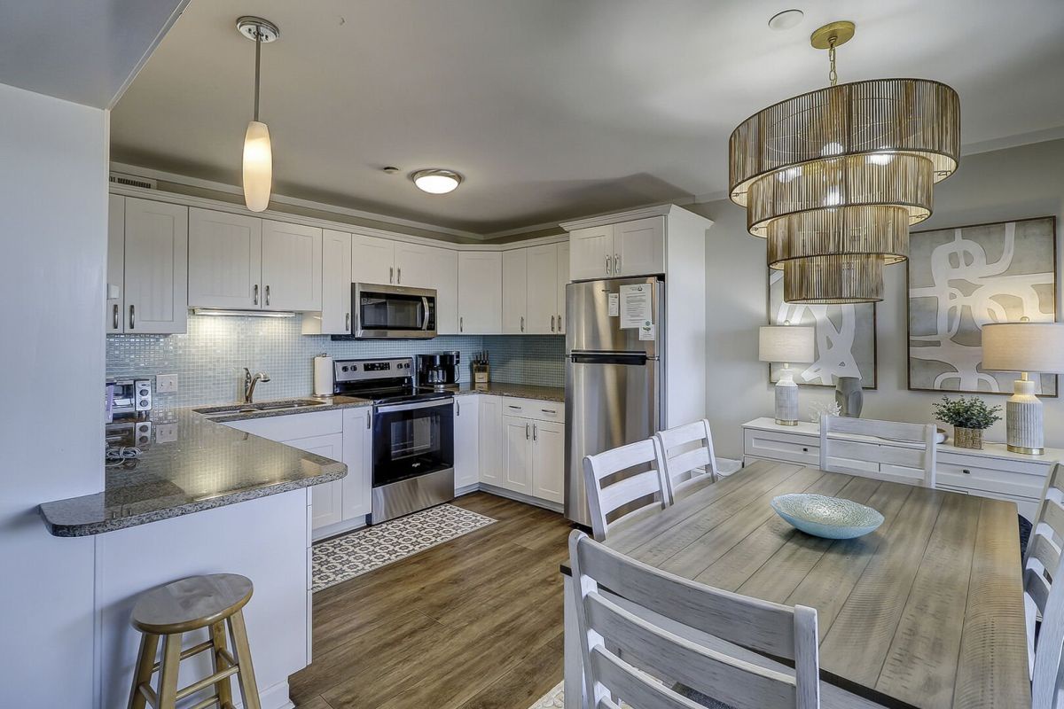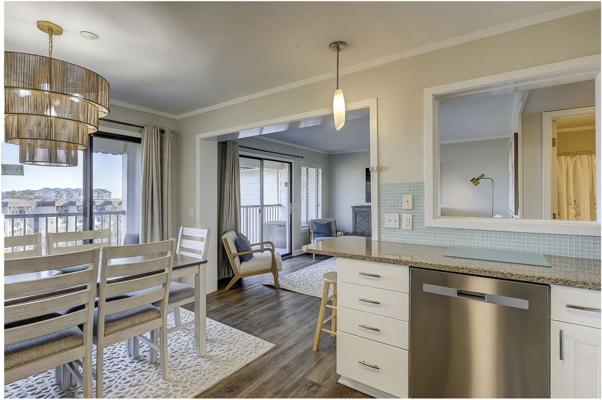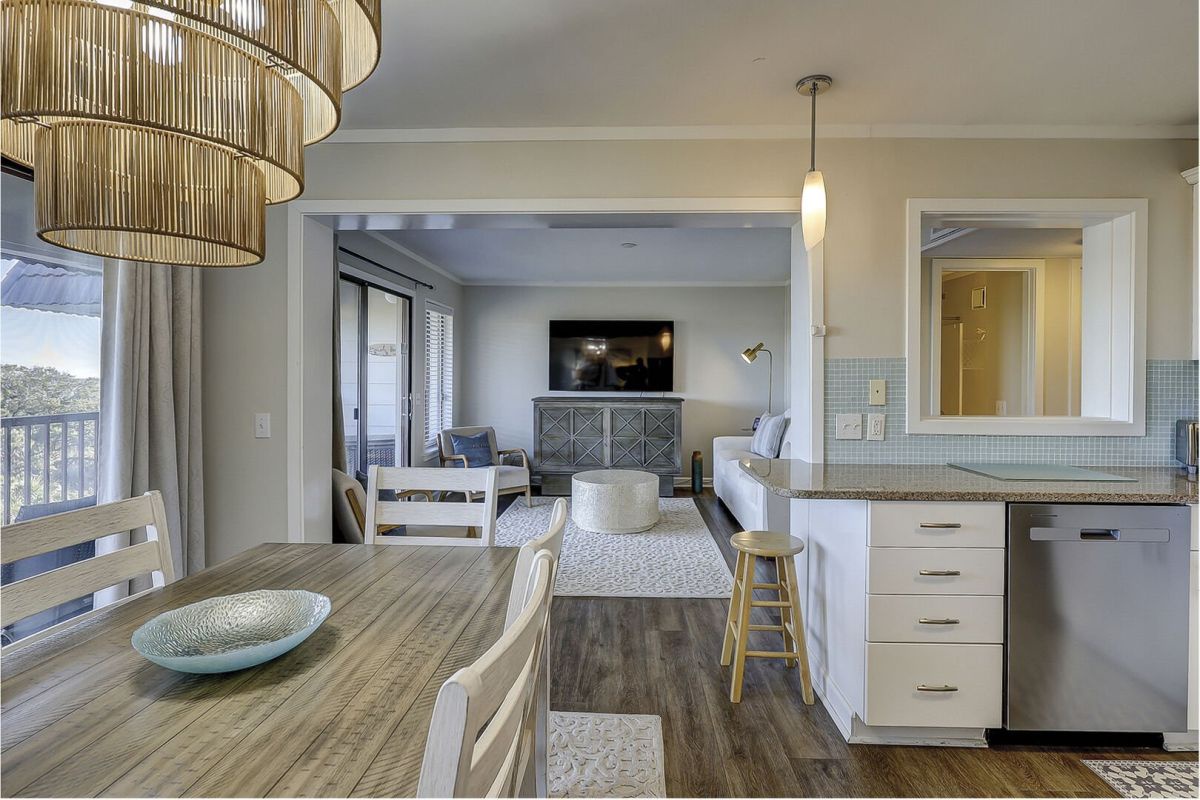 Step inside and feel instantly at home. The villa’s warm, inviting ambiance sets the stage for relaxation and connection. Two thoughtfully designed bedrooms provide a restful sanctuary for families or friends. The primary bedroom features a luxurious king-sized bed and soothing coastal hues that echo the rhythm of the sea. The guest bedroom, perfect for kids or extra guests, has 2 cozy twin beds, ensuring everyone enjoys a peaceful night’s rest. The villa’s open-concept living area flows seamlessly from a fully equipped modern kitchen to a stylish dining area that seats six, creating a perfect space for shared meals and laughter. The living room invites you to unwind on plush seating while you enjoy a movie night or simply watch the ocean waves through the balcony doors.