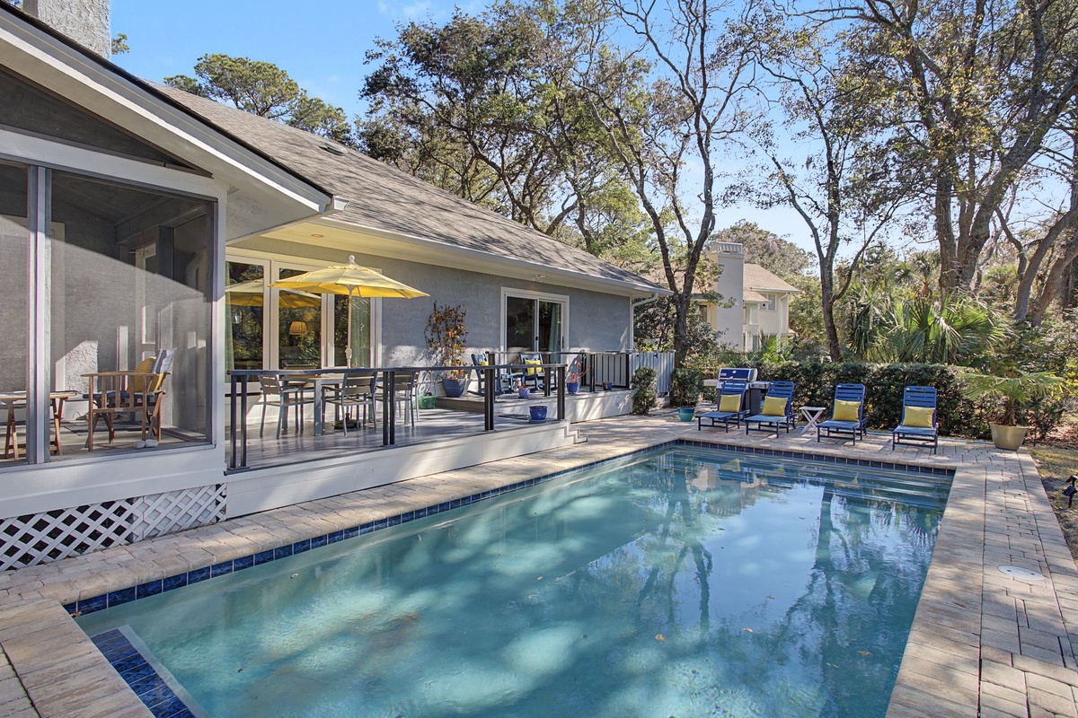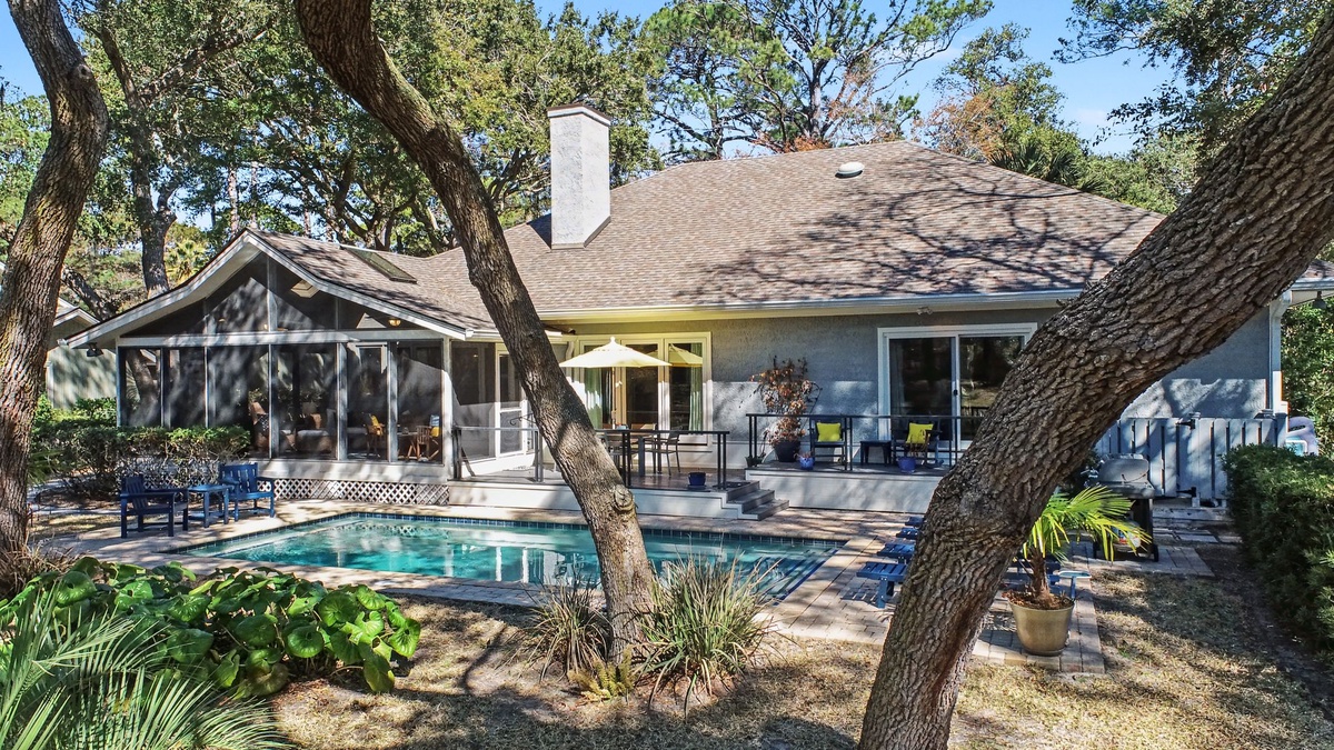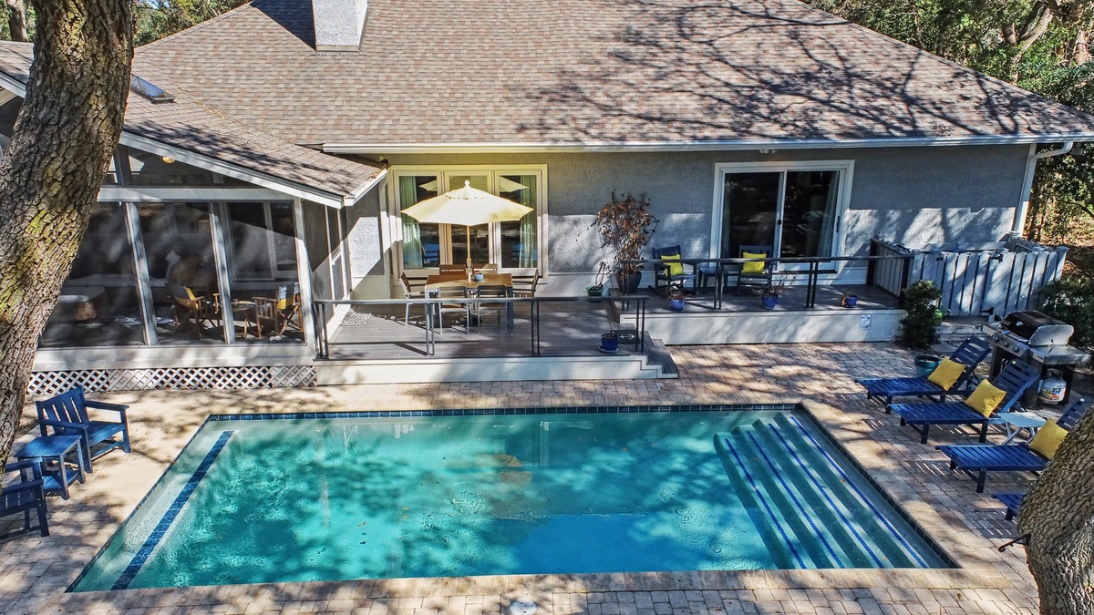 One of the home’s most loved features is the expansive L-shaped screened porch, beautifully tiled and overlooking a peaceful lagoon surrounded by nature. Step outside to your private pool, set on a pristine paver deck and framed by lush tropical landscaping that feels like your own personal resort. After a beach day, rinse off in the private outdoor shower before heading inside through the courtyard. Whether lounging poolside, enjoying morning coffee on the porch, or unwinding with sunset views, this home delivers effortless island living. Get the ultimate beach experience and use our outdoor shower - maximum comfort and privacy!