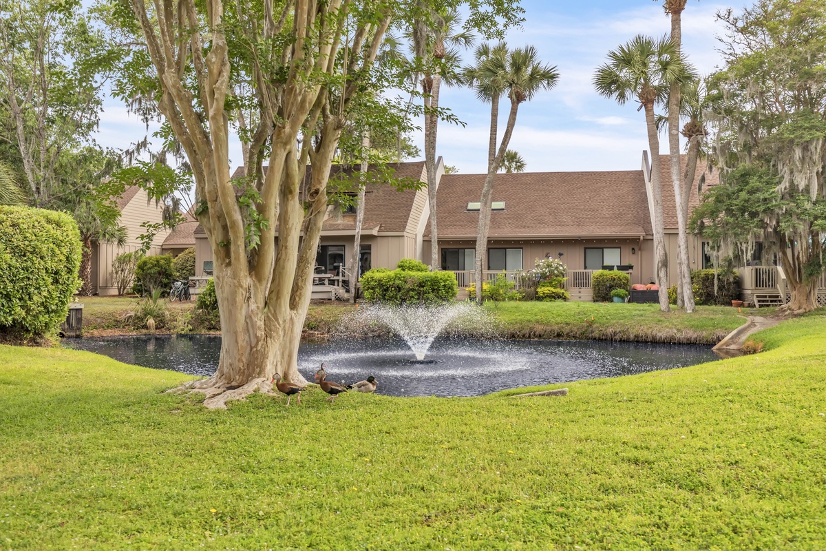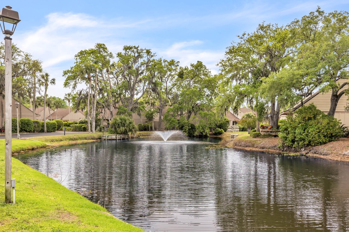 The villa comfortably accommodates guests with a spacious primary bedroom that includes a private ensuite bathroom with a tub and shower combination. A cozy guest bedroom provides an additional television and a peaceful place to rest after a full day exploring the island. Guests enjoy access to the Queen’s Grant community pool along with nearby tennis courts and resort amenities. The surrounding Palmetto Dunes resort offers three championship golf courses, scenic lagoons, and miles of bike paths that wind through lush Lowcountry landscapes.