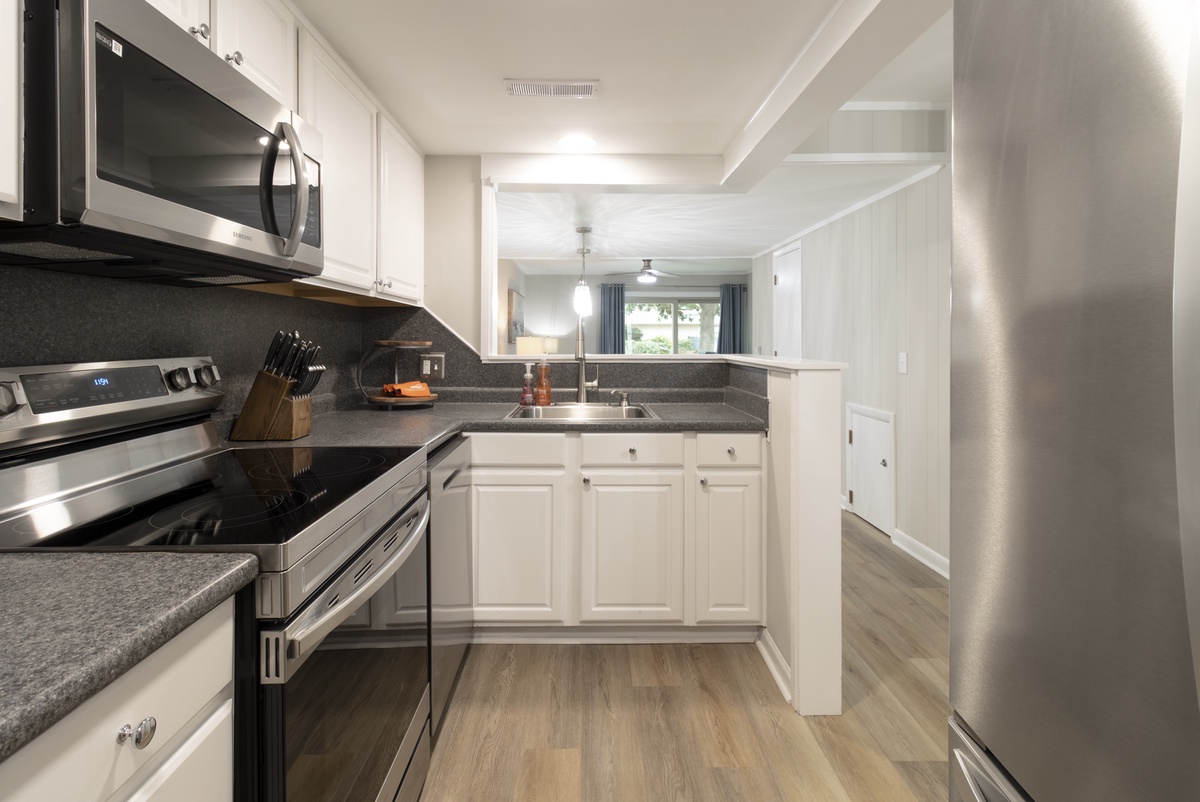 We loved the many surprise check-in gifts including fresh fruits, snacks, eggs, and orange juice. The unit was clean and modern, and the location not far from Coligny was perfect!Daniel S. - Posted: 3/29/2023