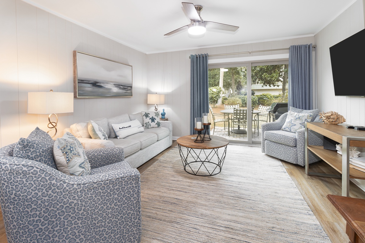 This villa has been recently renovated with new appliances, furniture, and coastal-inspired décor. The spacious layout includes a fully equipped kitchen, a comfortable living area, and a private patio, perfect for relaxing after a day in the sun. With a 2-minute walk to the beach and a 5-minute stroll to Coligny Plaza and Celebration Park, this villa offers an unbeatable location for both relaxation and adventure.
