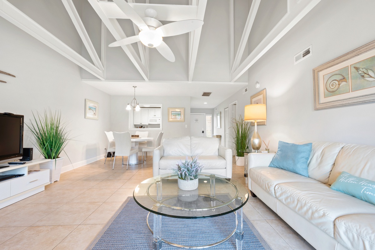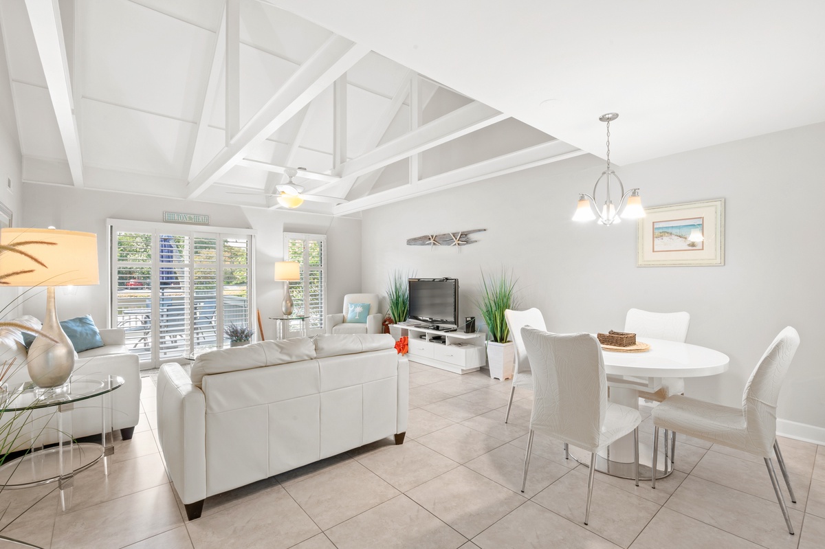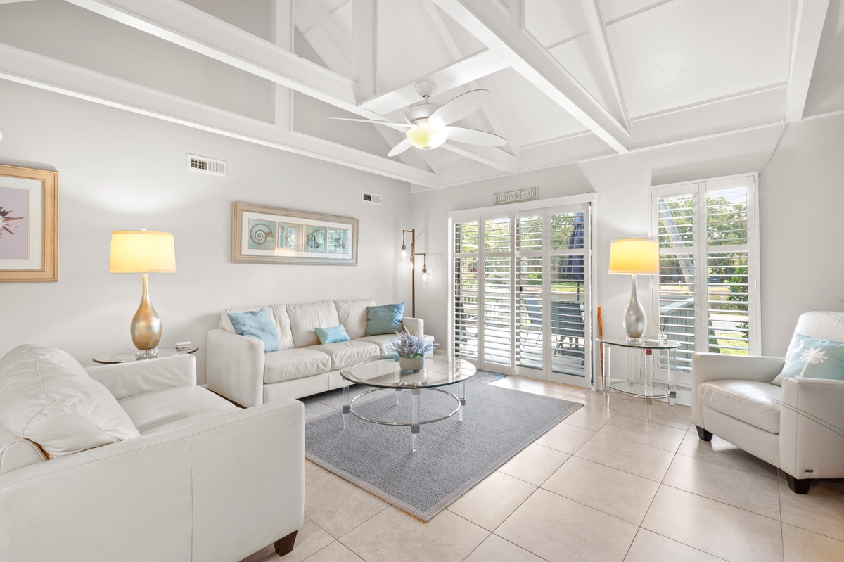 Welcome to 690 Queen’s Grant, a serene and stylish villa located in the heart of Palmetto Dunes Oceanfront Resort on Hilton Head Island. This beautifully updated retreat immediately captures your attention with its coastal charm, vaulted ceilings, and sunlit interiors. A private patio shaded by towering live oaks overlooks a peaceful lagoon, creating a true sense of island calm. Perfectly blending comfort, convenience, and location, this villa sets the stage for a memorable Hilton Head getaway.