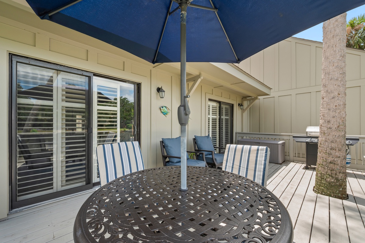 Located within the quiet Queen’s Grant community, this villa is just a 10-minute walk or short bike ride to three miles of pristine Atlantic beach. Guests enjoy easy access to the Robert Trent Jones Oceanfront Golf Course, world-class tennis and pickleball facilities, scenic lagoons, and miles of shaded bike paths. Nearby Shelter Cove Harbour & Marina offers waterfront dining, boutique shopping, and lively seasonal events. Every day brings new opportunities to explore the best of island life.