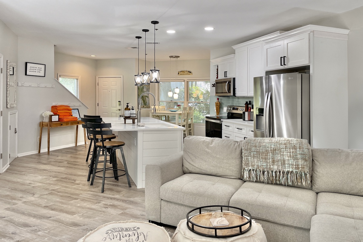 This cute little town house was clean and quiet. It was a short walk to the beach, about 10 minutes. And it was a medium walk to Coligny Plaza/Boardwalk, about 25 minutes. There was plenty of room for parking and the beaches were not too crowded. Advice to future occupants: bring your own hand soap, dish soap, laundry soap, dishwasher soap, trash bags, etc. There is a single pod Keurig. The traditional coffee maker is missing the actual coffee pot component. Lastly, there is a toll road on the way into the island, so bring some quarters :) We really enjoyed our stay and would be happy to stay again in the future! Both the town house and the entire island are extremely dog friendly.Rachel P. - Posted: 5/13/2018
