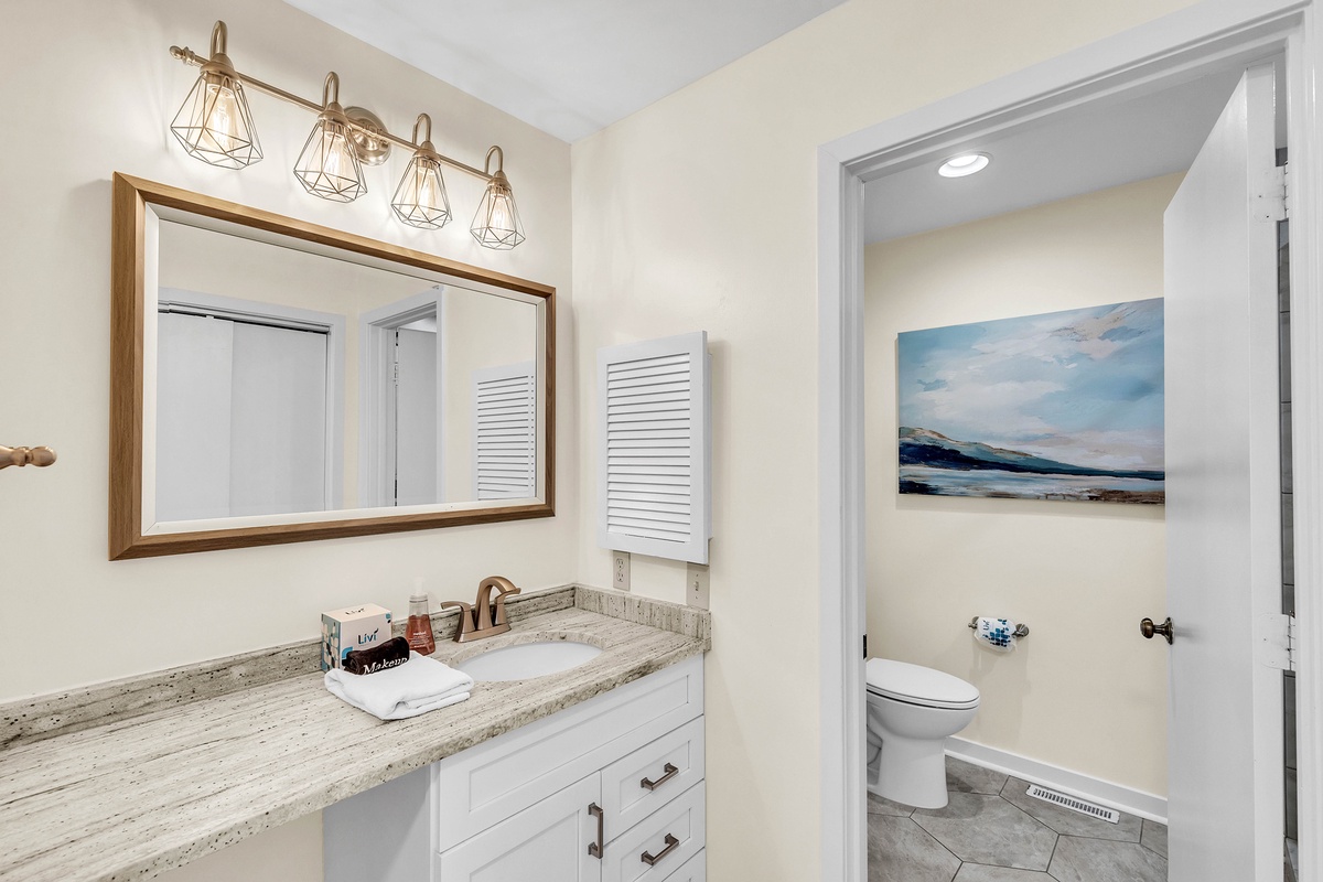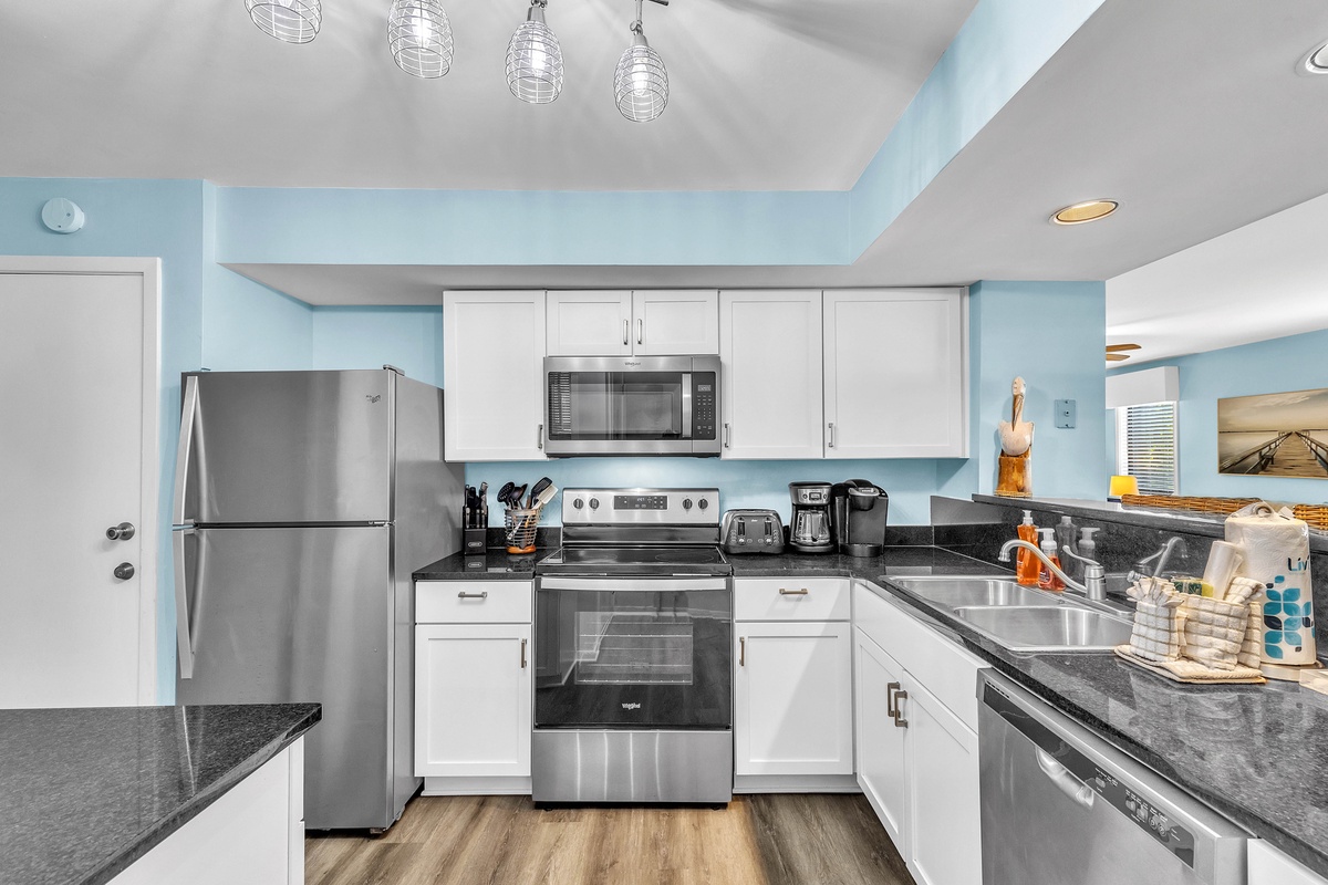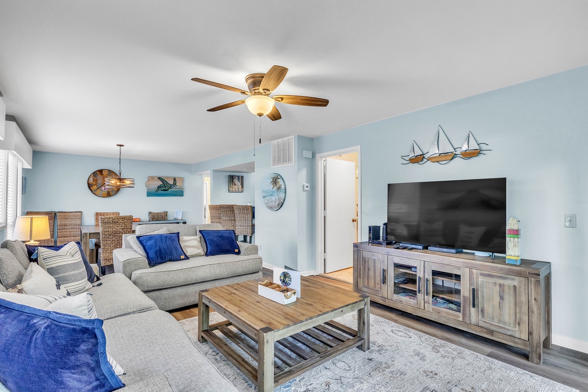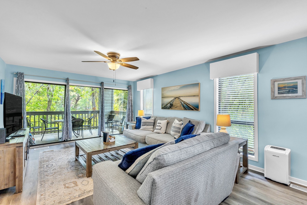 Welcome to 7827 Centre Court in the heart of Palmetto Dunes! This updated and pet-friendly (for an additional charge) 2BR/2BA villa is steps from the community pool and has easy access to the beach, tennis, golf, and all that Palmetto Dunes has to offer! The kitchen is fully equipped and features brand-new stainless-steel appliances, granite countertops, and bar seating for two. The dining area comfortably seats six. The living room has comfy seating and is perfect for cuddling up with popcorn for a movie night on the large flatscreen TV. Just off the living area, you can access the private deck, which overlooks Palmetto Dunes' 11-mile lagoon system. The bedrooms are situated on opposite ends of the villa. Both are equipped with 2 queen-sized beds and a television, and each has its own en-suite bathroom.