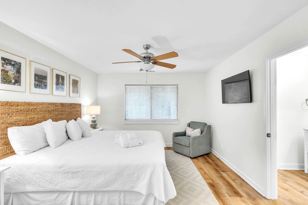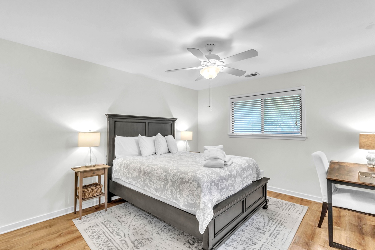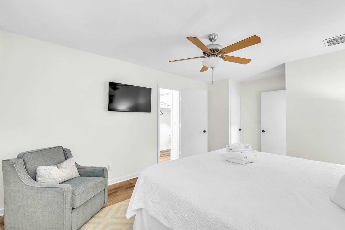The primary bedroom features an “oh-so-cozy” king bed, bedroom two has a queen bed fit for royalty, and the third bedroom is perfect for the kids with two twin beds. We think you will be happy with the two full bathrooms, as well!
