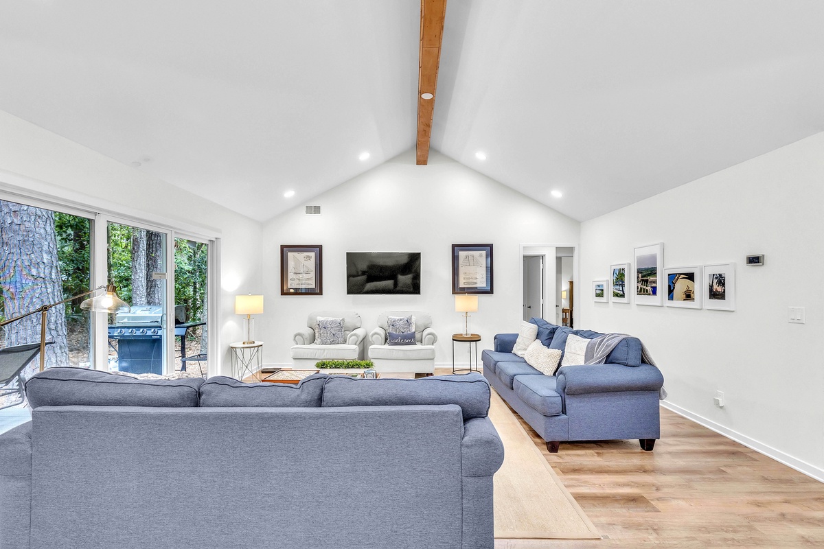 We had a great week at this lovely, well decorated and comfortable home. The layout was very functional and perfect for our family of 5. We enjoyed spotting deer in the backyard, preparing meals in the updated and well stocked kitchen, and doing puzzles in the spacious but cozy family room. The location was quiet and peaceful, less than a 10 minute bike ride to the beach and a short walk to the Sea Pines shopping center. Management company was responsive and the check in process was a breeze.Laura D. - Posted: 8/3/2022