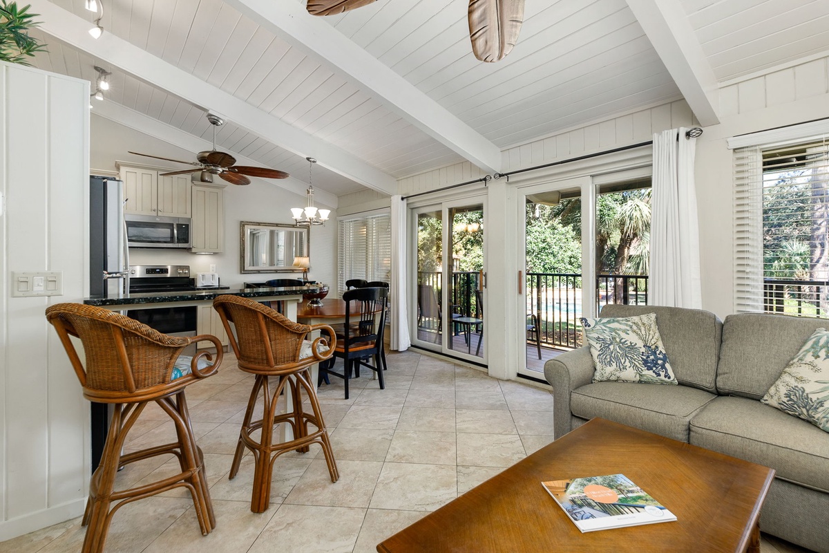 Excellent stay and property! 3 beds and 3 baths, plenty of room for our family of 6. This property has a beautiful courtyard, lawn, and pool in the center that the unit’s balcony overlooks. It feels more like a cozy home, rather than a commercialized high-rise condo. The best part is that it has private access from the yard to the beach which makes an easy walk with a beach cart. We can easily come back to the room from the beach during the day for meals and breaks, this was great for our small kids and elderly parents. I highly recommend this unit for an awesome Hilton Head vacation.Jeremy M. - Posted: 7/25/2022
