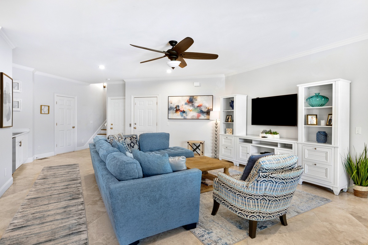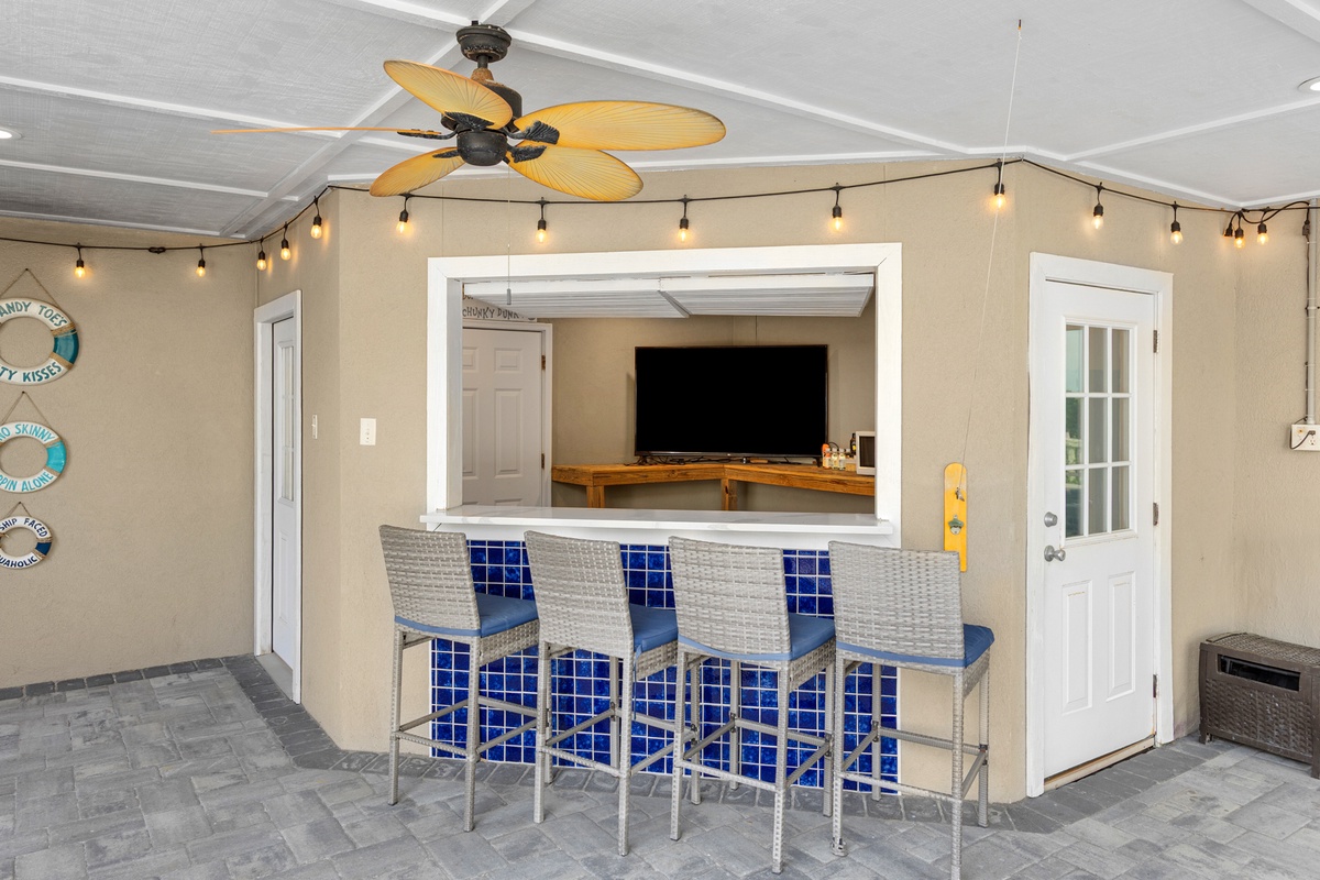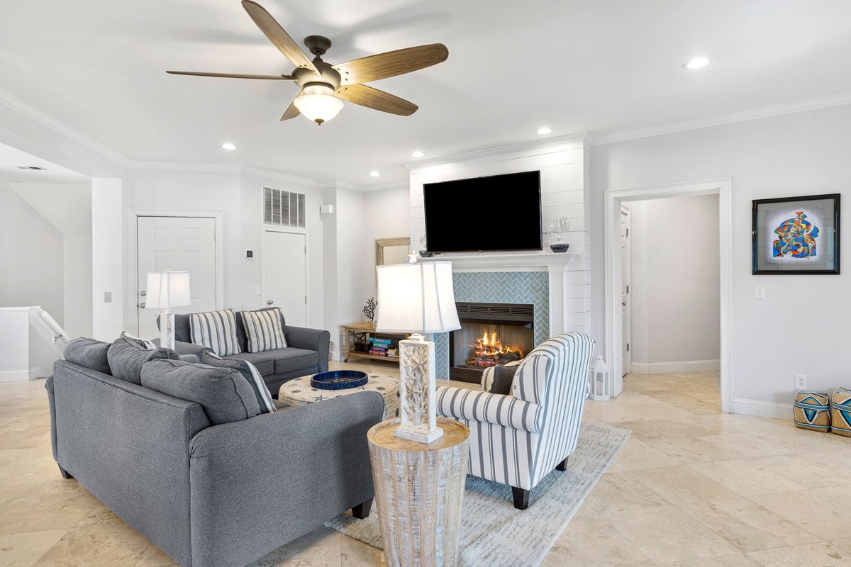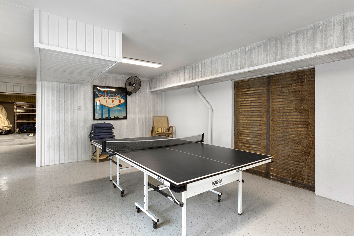 The ground level sets the tone for effortless enjoyment. A private pool and spa anchor the outdoor space, perfect for sun-soaked afternoons or evening relaxation. For cooler months, the pool and spa can be heated for an additional charge, extending the outdoor experience well beyond peak summer. A tiki bar makes poolside cocktails easy, while the game room with ping pong keeps all ages entertained between beach walks and sunset swims.