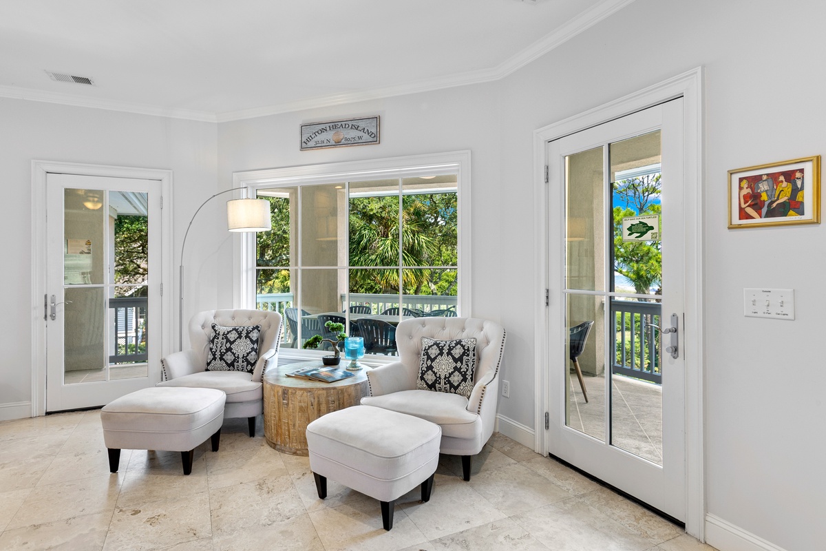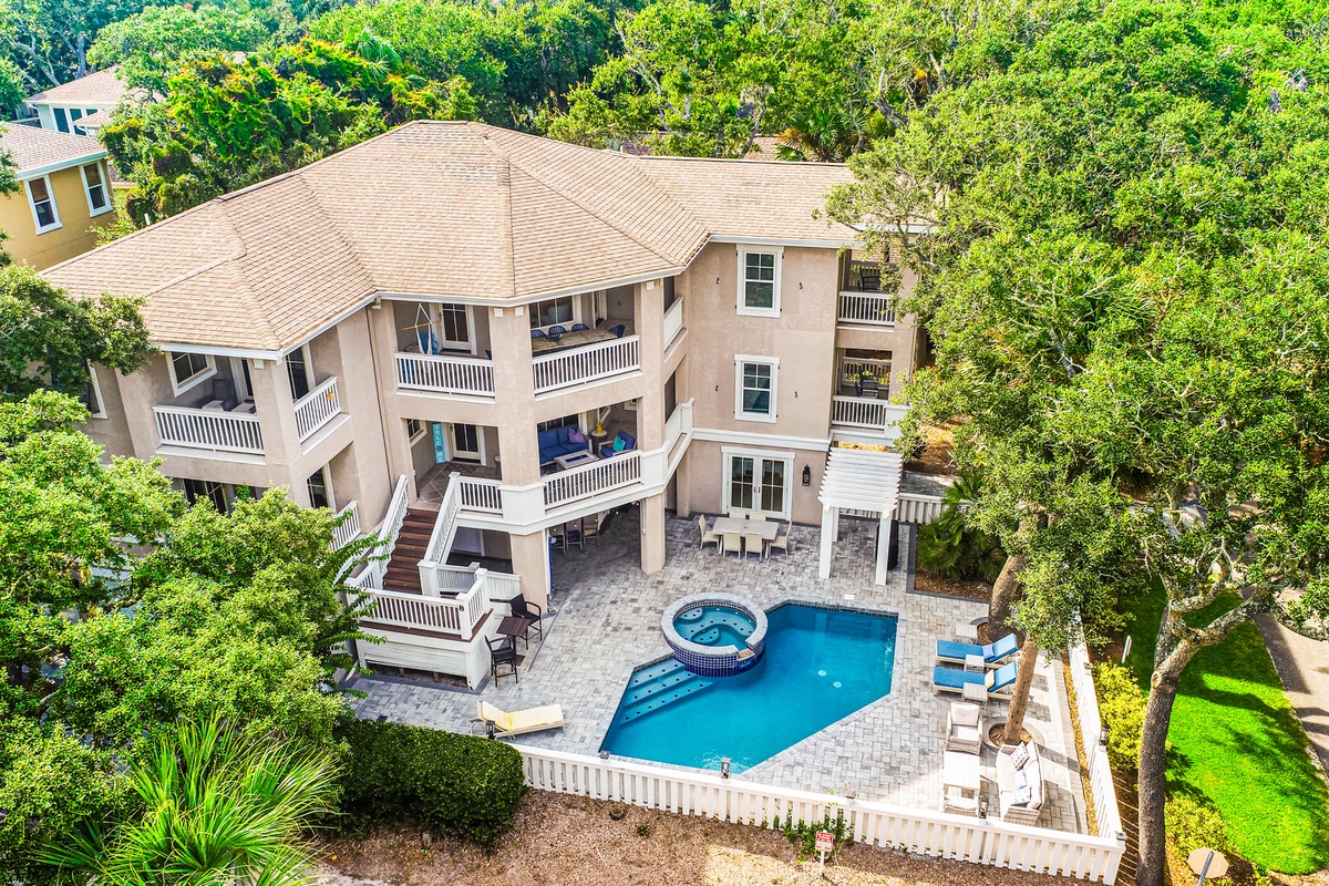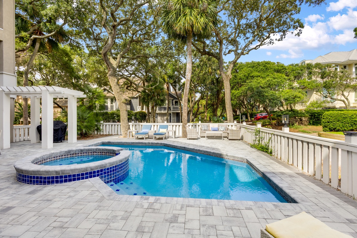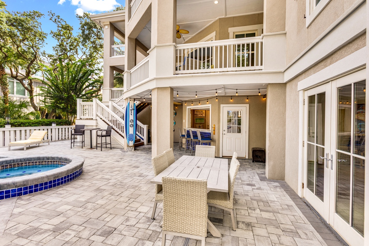 Upstairs, the experience elevates again. A second living area and full kitchen provide flexibility and privacy, perfect for multi-generational groups or families traveling together. Two spacious primary suites, each with en suite bathrooms and private balconies, offer a serene escape to unwind, recharge, and savor moments of quiet luxury. Located just a short walk or bike ride from Coligny Plaza, you are minutes from premier shopping, dining, live entertainment, and miles of pristine beaches. Spend your days exploring Hilton Head Island, then return to a private sanctuary designed for rest and reconnection.