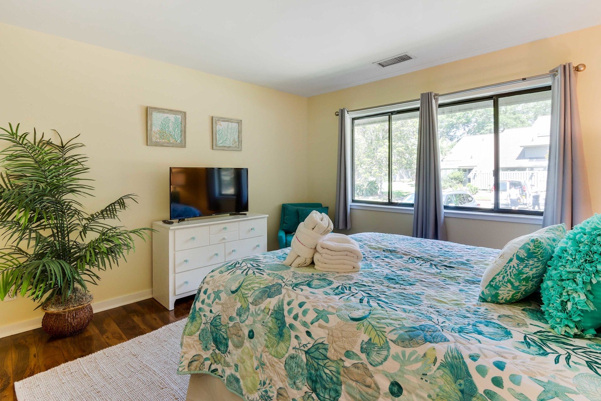 This villa has everything you need for a family-friendly vacation, including a community pool, kids splash pool, tennis courts, beach access, seasonal beach shuttle, bike and boat rentals, 3 world-class golf courses, and beach gear rentals. Don't forget to hit up the Palmetto Dunes General Store for some of the best fried chicken on the island! There's something for everyone here, so you'll never run out of things to do!