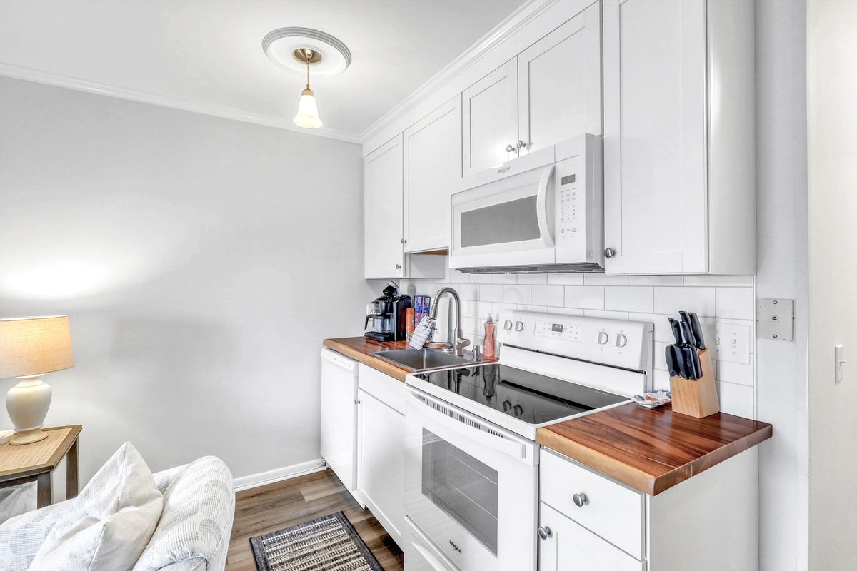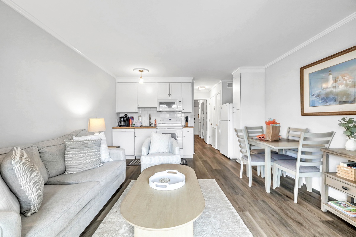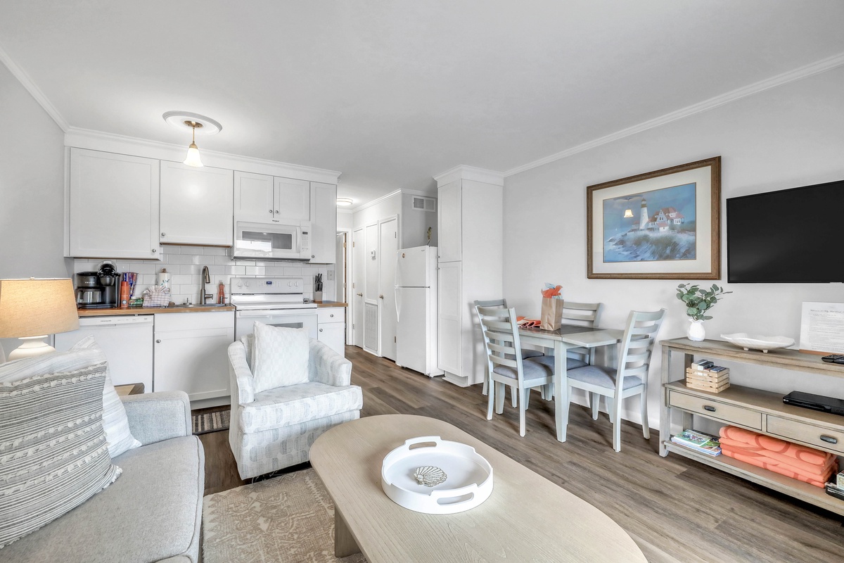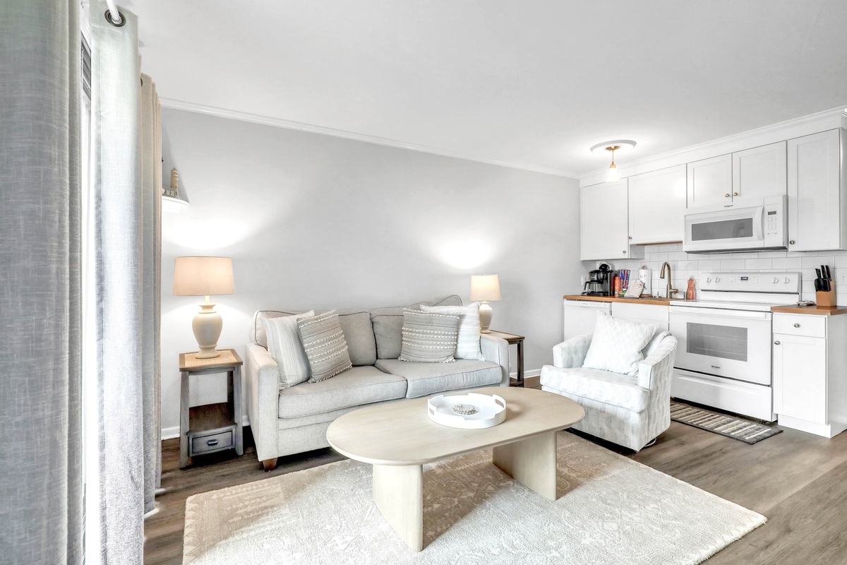 Hungry? No problem. The kitchen has all the essentials for whipping up beachside feasts, from a four-burner stovetop to a dishwasher for easy cleanup. And when it's time to unwind, kick back in the living room with your favorite shows streaming on the smart TV.